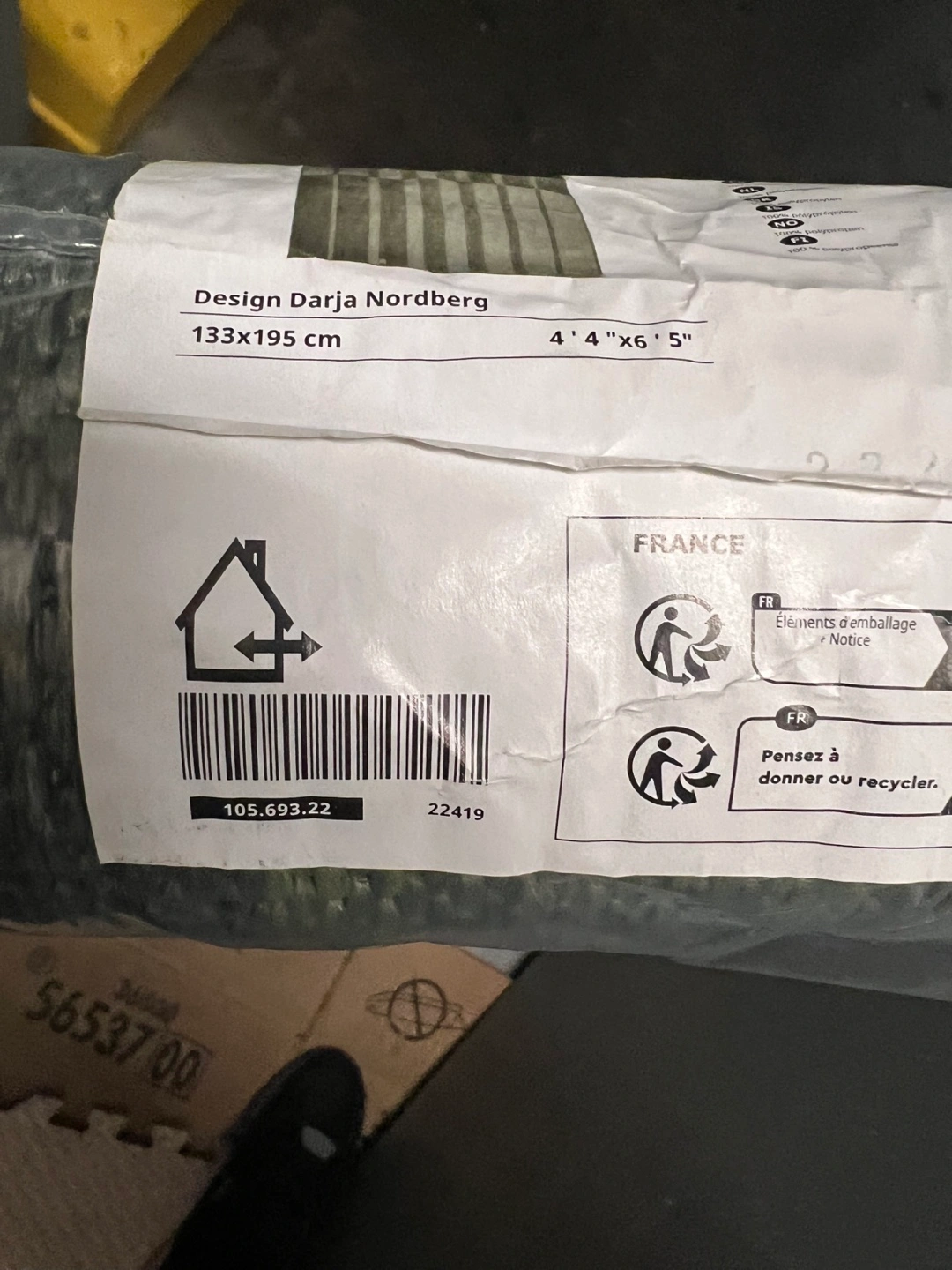 Selling an IKEA Kantstolpe outdoor rug. The dimensions are 133x195 cm, which translates to 4' 4" x 6' 5". Design by Darja Nordberg Must pick up