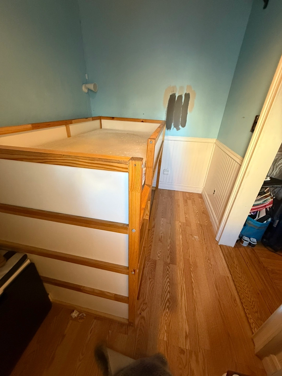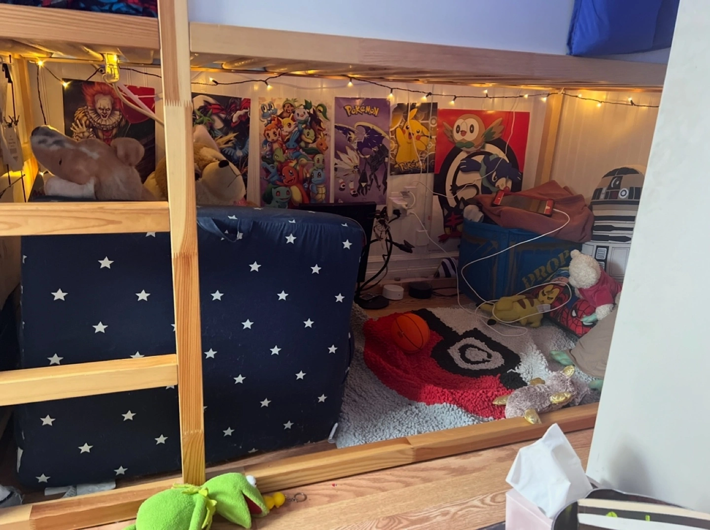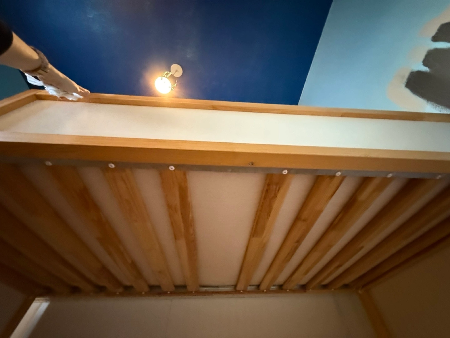 78Must be picked up asap. Can only hold til next week: Used IKEA Kura bed frame. White and pine. Some assembly required. Good condition. Missing one slat that broke in half, still have it, can be replaced or repaired, still secure. Bed can be used as a half loft or upside down as a regular frame. Also have the blue bed tent pictured that can be included. Some markings in the wood from use over time by small children .. shown in photo.