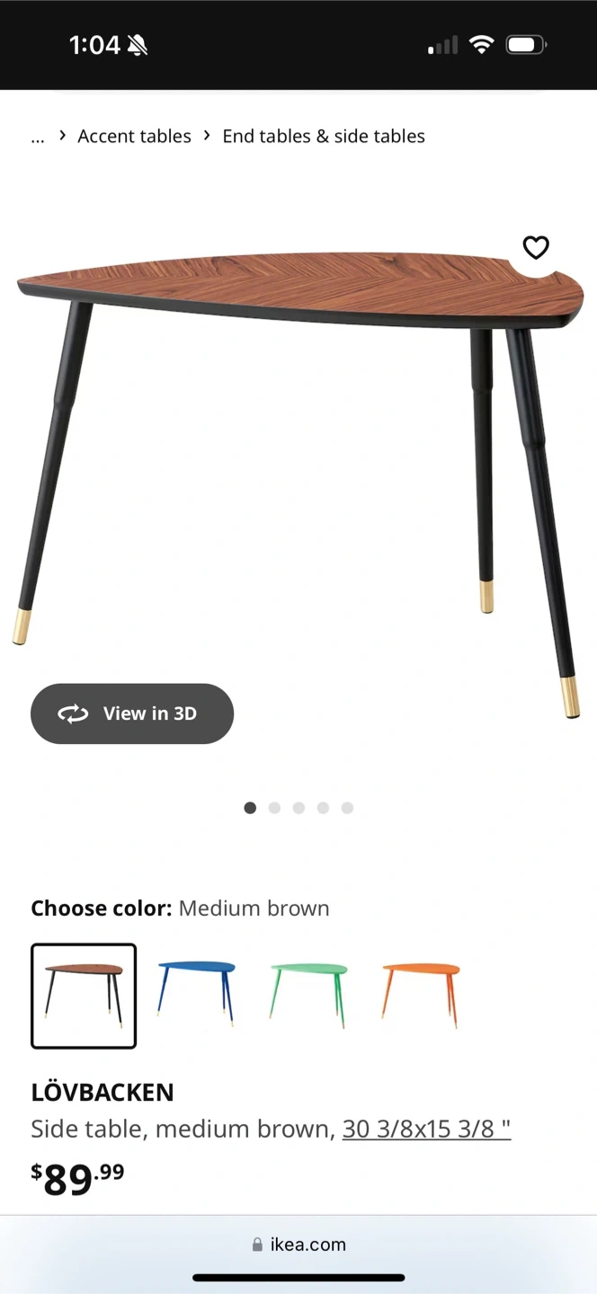 Selling a lovely IKEA LÖVBACKEN side table in medium brown! This stylish table measures 30 3/8x15 3/8 inches, making it a perfect accent piece for any room. Originally bought for $89.99, it's in good condition and ready for a new home Please note there is a small chip in the veneer as shown in the first pic