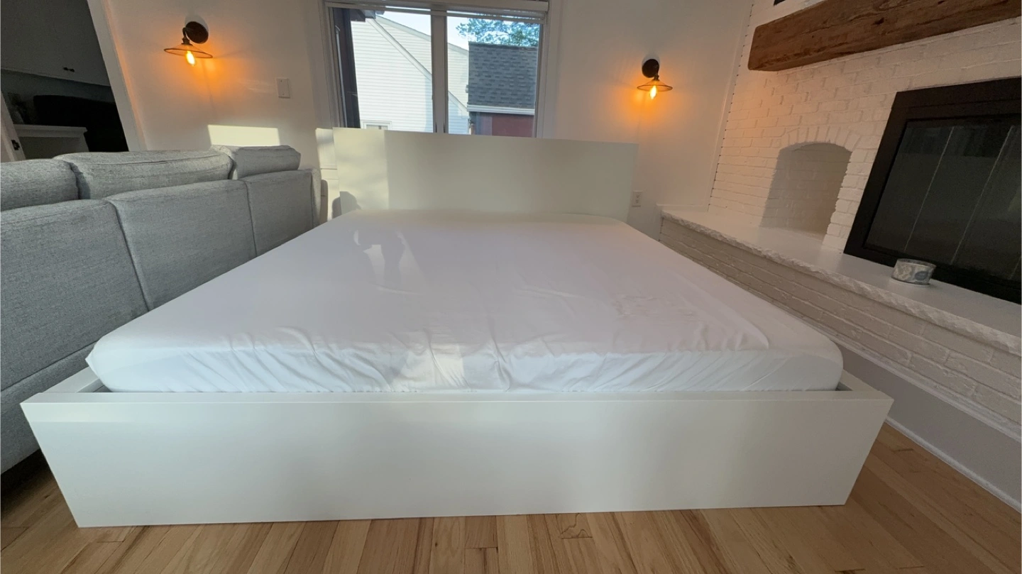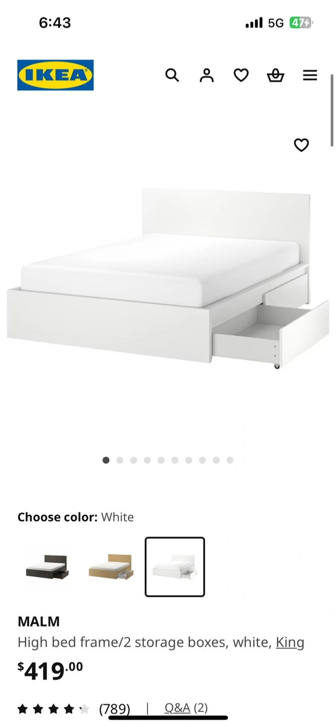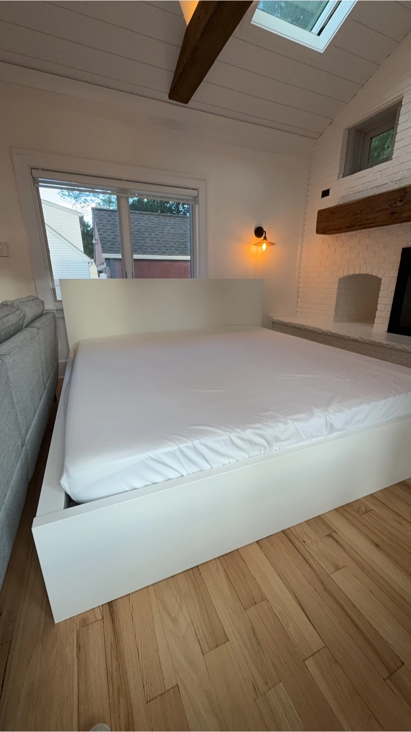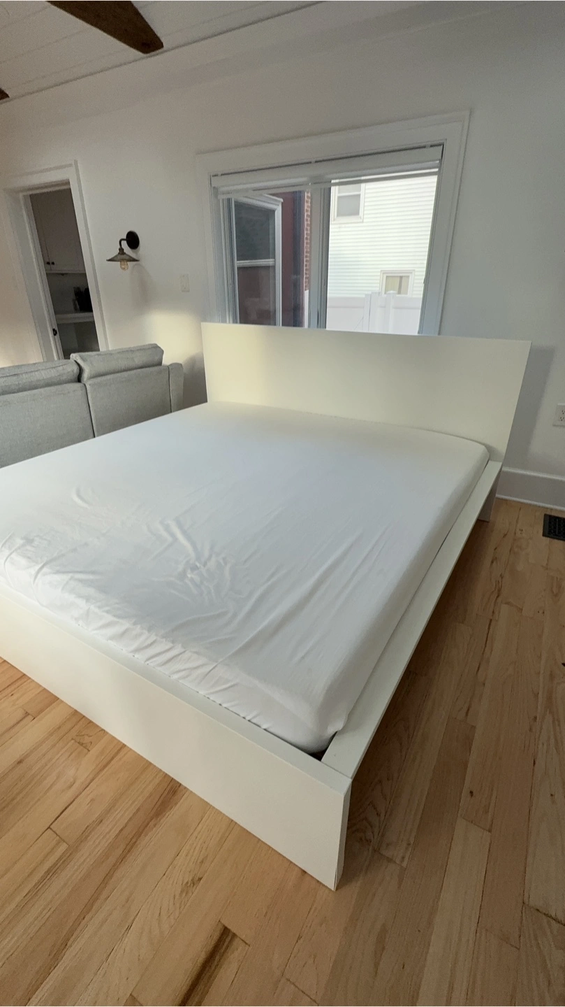 55Link to product: https://www.ikea.com/us/en/p/malm-high-bed-frame-2-storage-boxes-white-luroey-s89175973/#content Selling a king-size IKEA Malm bed frame (white) with 2 storage drawers and a mattress. This set was used only 4 times by a student visiting from Korea and has not been used since. As you can see in the pictures and the link, it’s just like new and comes in a beautiful white color. • The bed frame with 2 storage drawers currently sells for $479 at IKEA. • The king-size mattress was purchased for about $400. Total value is over $900, but I’m offering everything together for just $500! —-> $200 We’re closing soon, so I’m looking to find a new owner quickly. Located in Nutley, NJ – pickup only. I can help with disassembly and loading it into your vehicle. Please bring a large enough car – it may fit into a minivan only if the second-row seats are completely removed. Contact me ASAP: 646-515-0477