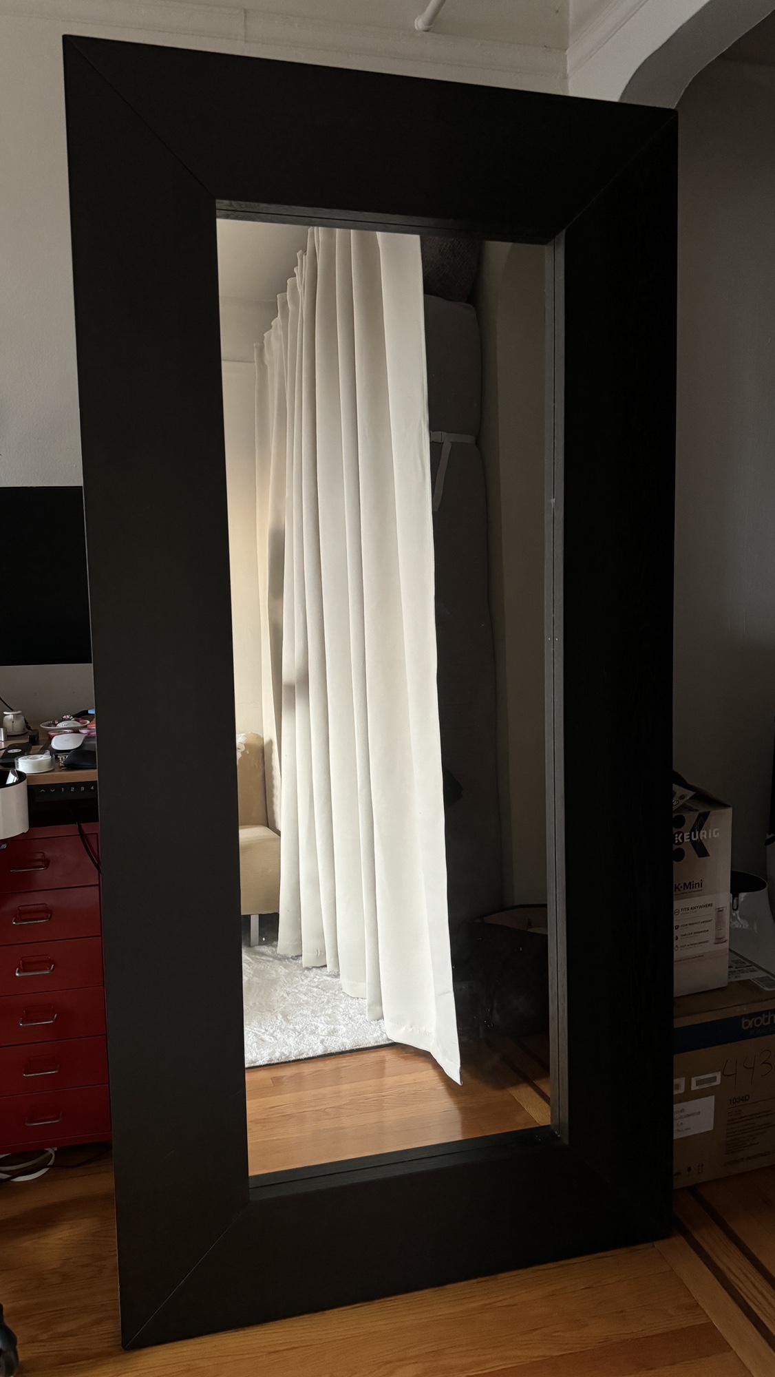 33IKEA Mongstad Floor Mirror in Black Wood in good condition, see pics. Pick up only in Elmhurst, closer to Elmhurst Hospital and Jackson Heights.