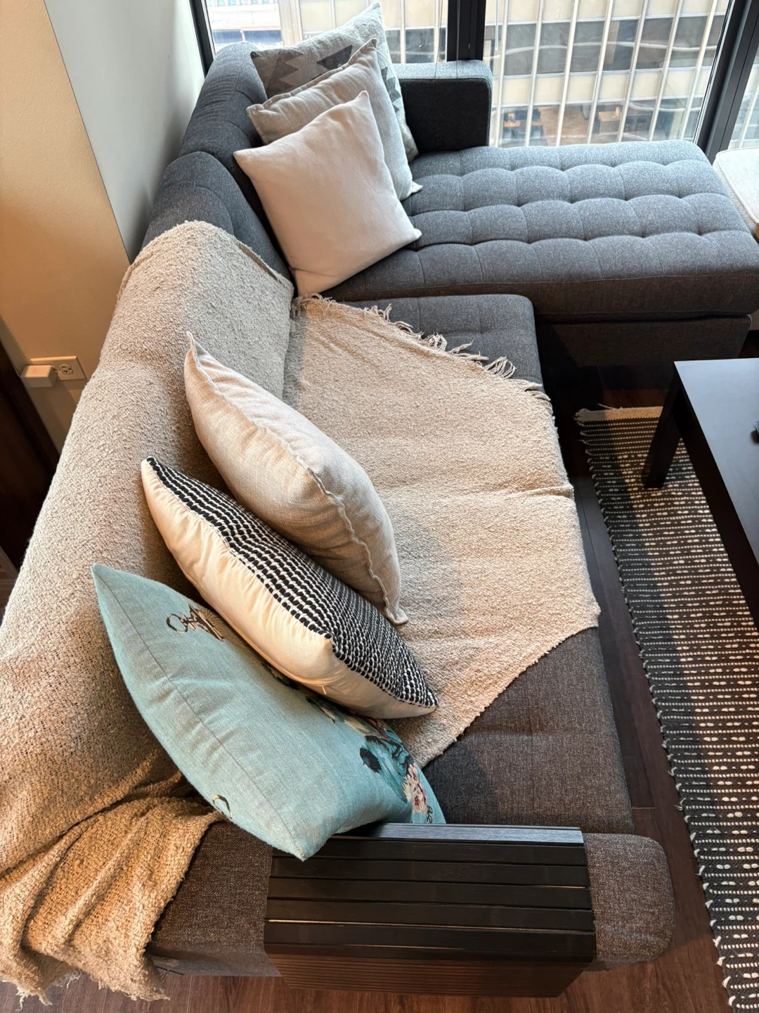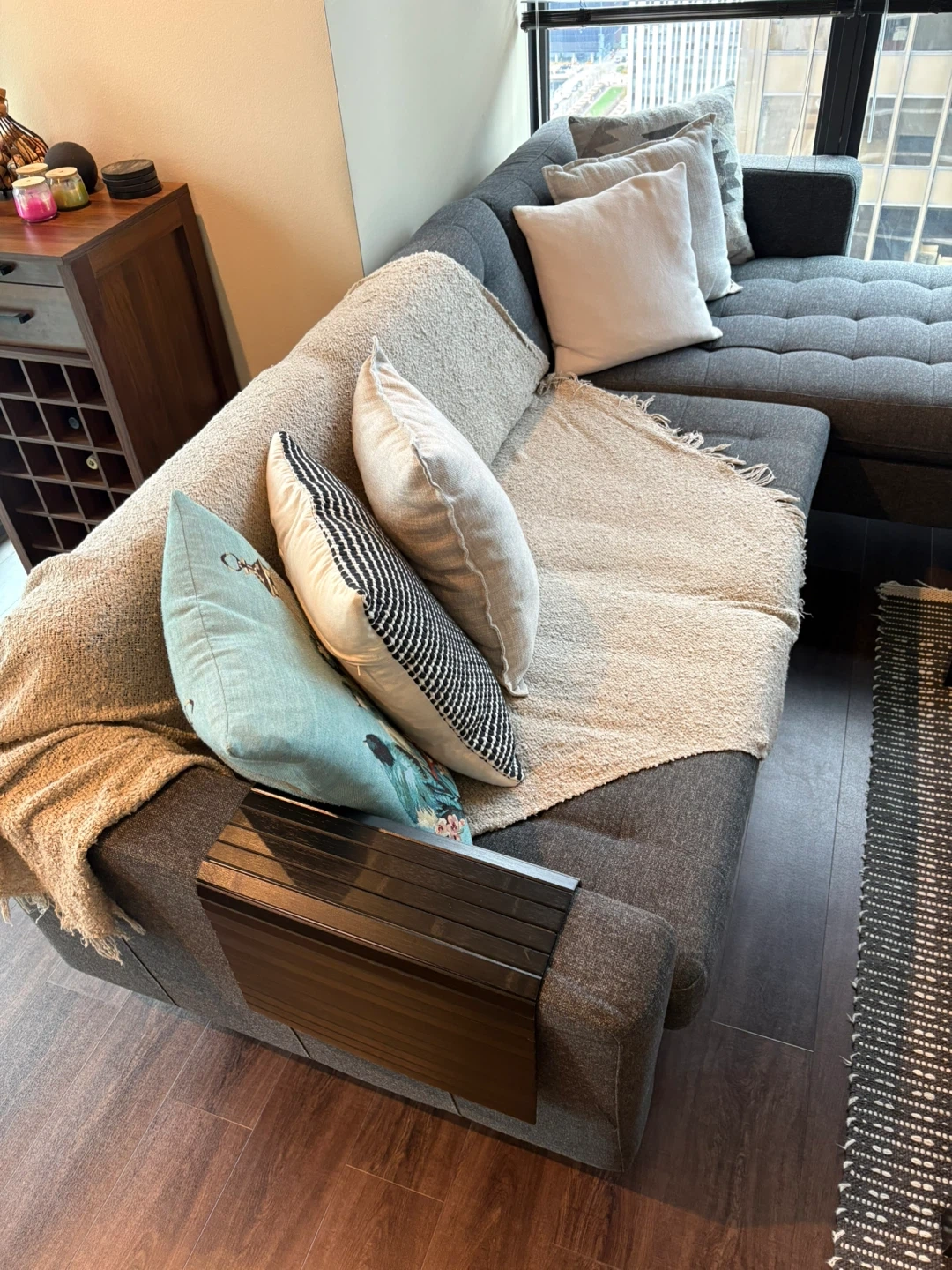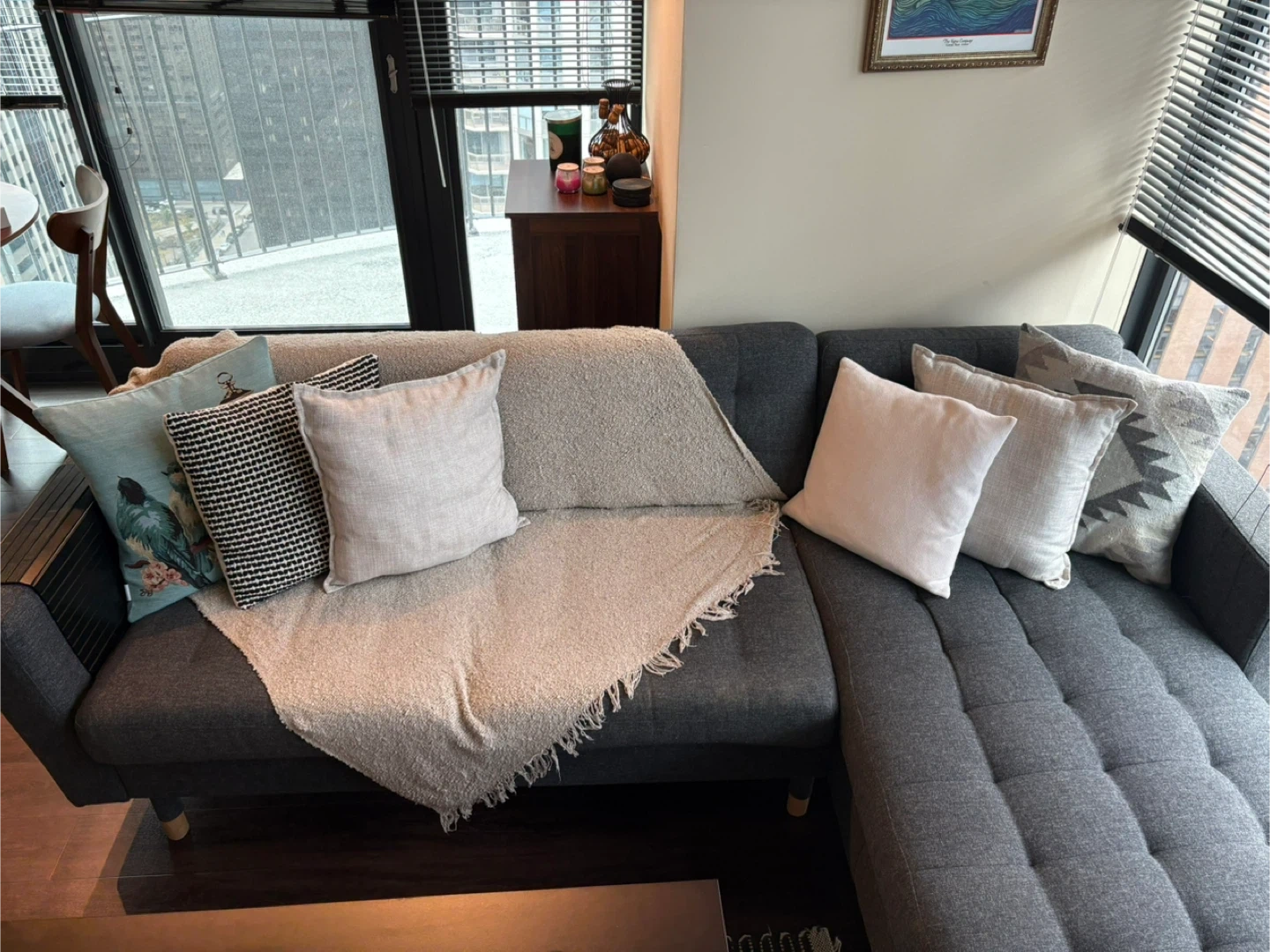 Show allIkea - Morabo Gray Sectional Sofa with Pillows & Throw