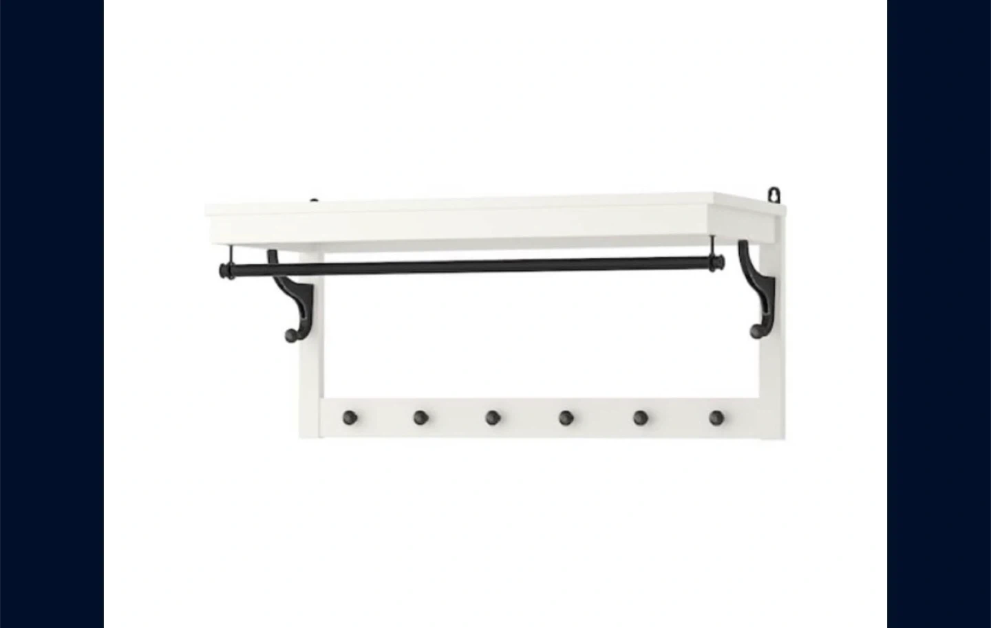 34Selling a NORDKISA coat rack with shelf from IKEA in grey. It measures 85 cm (33 1/2"). Perfect for adding extra storage and hanging space in your entryway or bedroom! Still in the box brand new