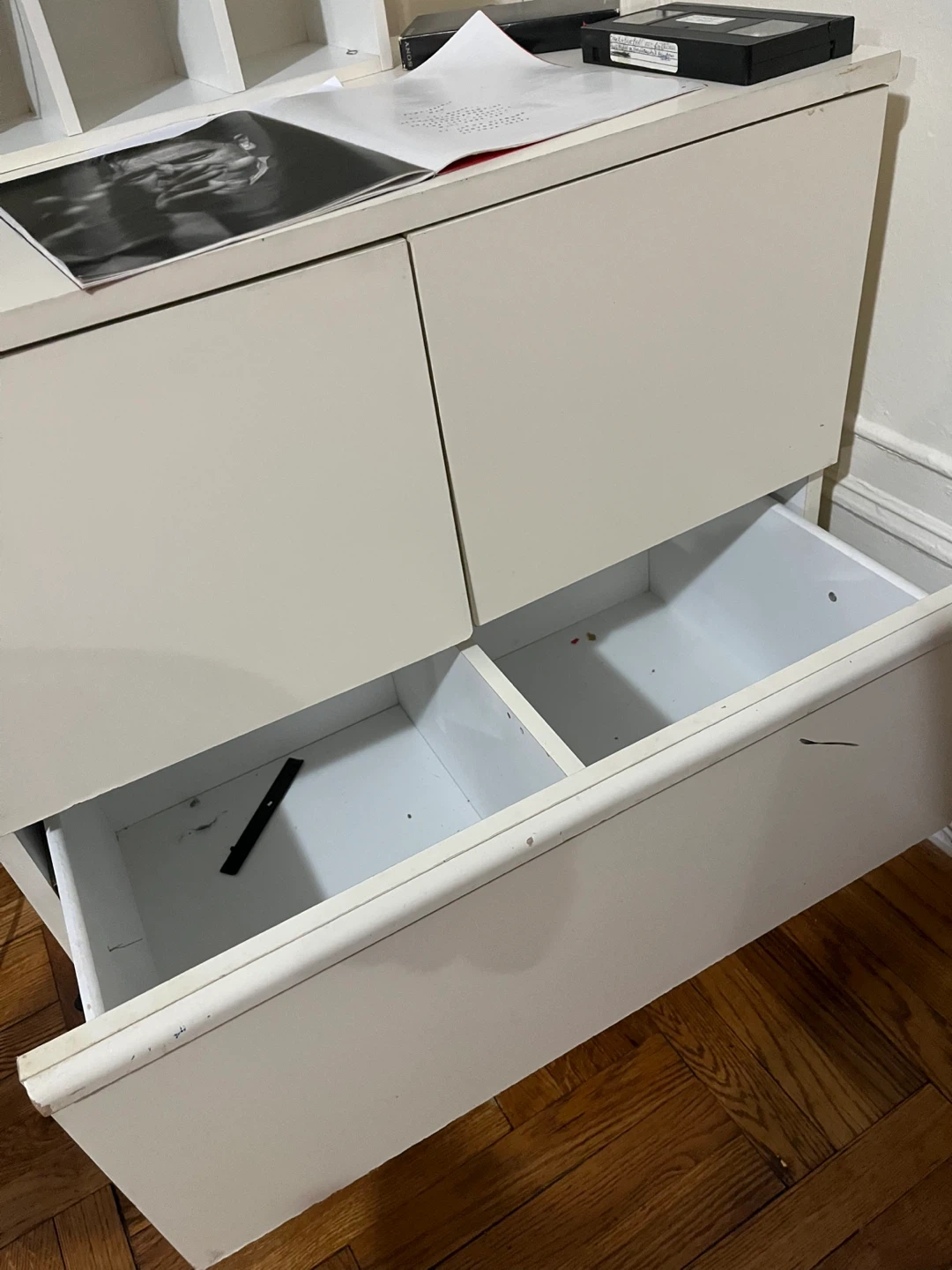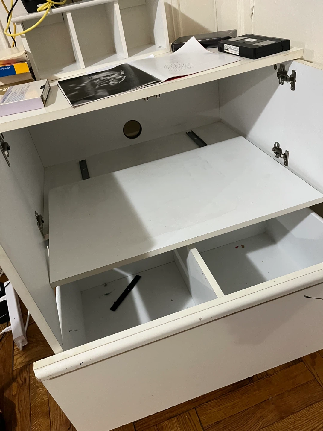 Selling a white cabinet with drawers. It has a clean look and offers some storage space. Perfect for organizing your items!