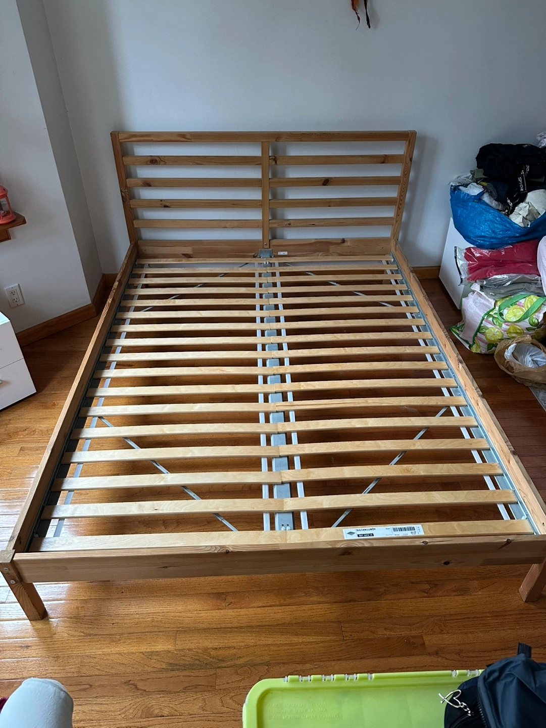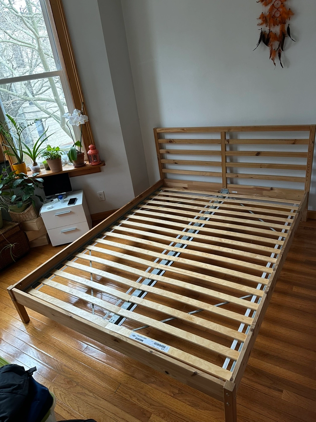 Queen Bed Frame - Black Metal & Gray Upholstery