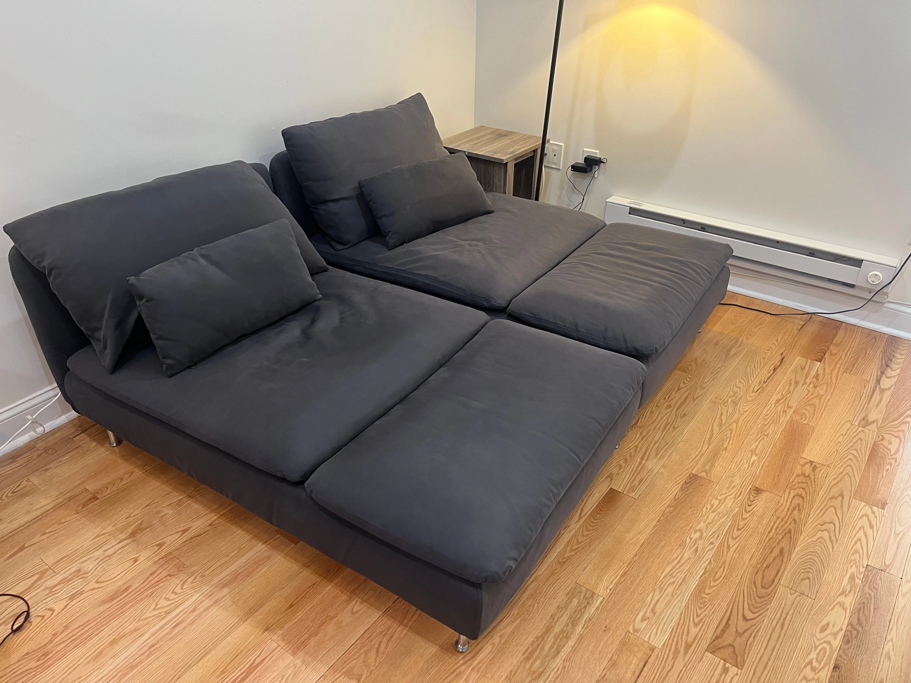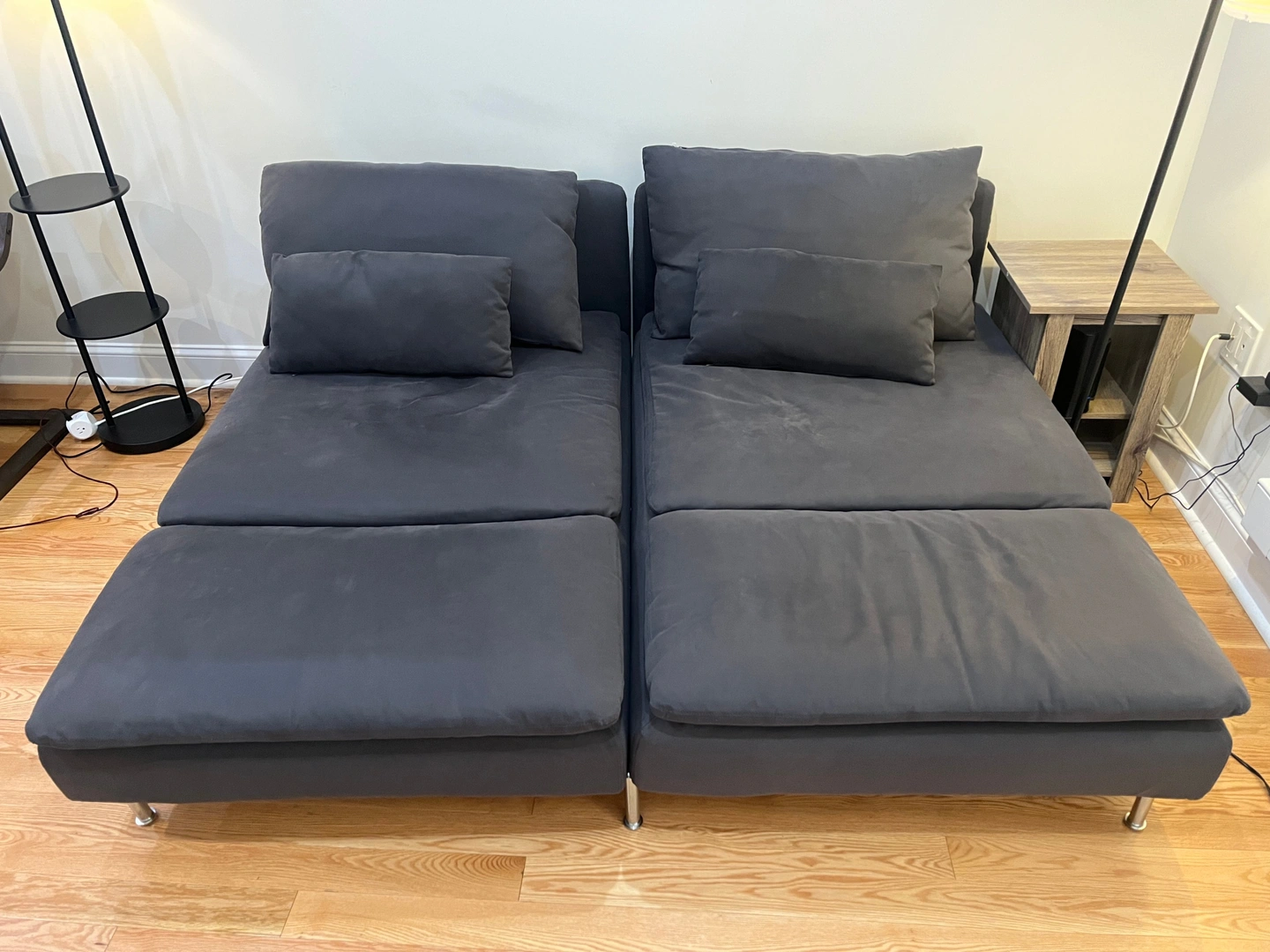 Selling two SÖDERHAMN chaise lounges put together to make one big sofa/daybed. Super comfy with deep seats, perfect for lounging or watching TV. You can keep them side by side as a big couch or separate them if you like. **Pick Up Only** Measurements (together): Width: about 73 1/4" Depth: 59 1/2" Height: 32 5/8" Seat height: 15 3/4" Condition: good used condition. Cushions and covers are all intact, no major stains or damage. From a smoke-free, pet-free home. https://www.ikea.com/us/en/p/soederhamn-chaise-fridtuna-dark-gray-s39449602/#content Feel free to reach out with any questions.