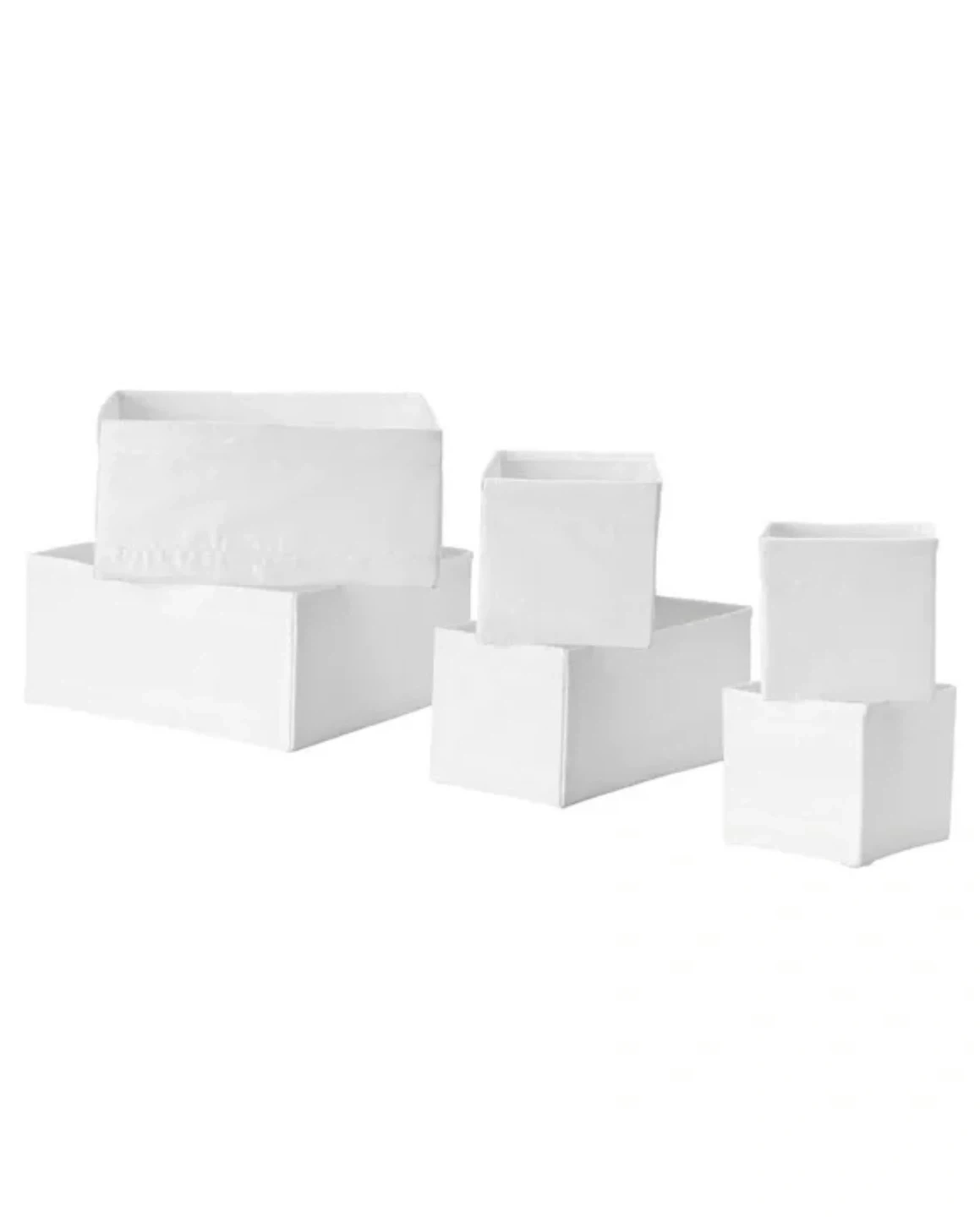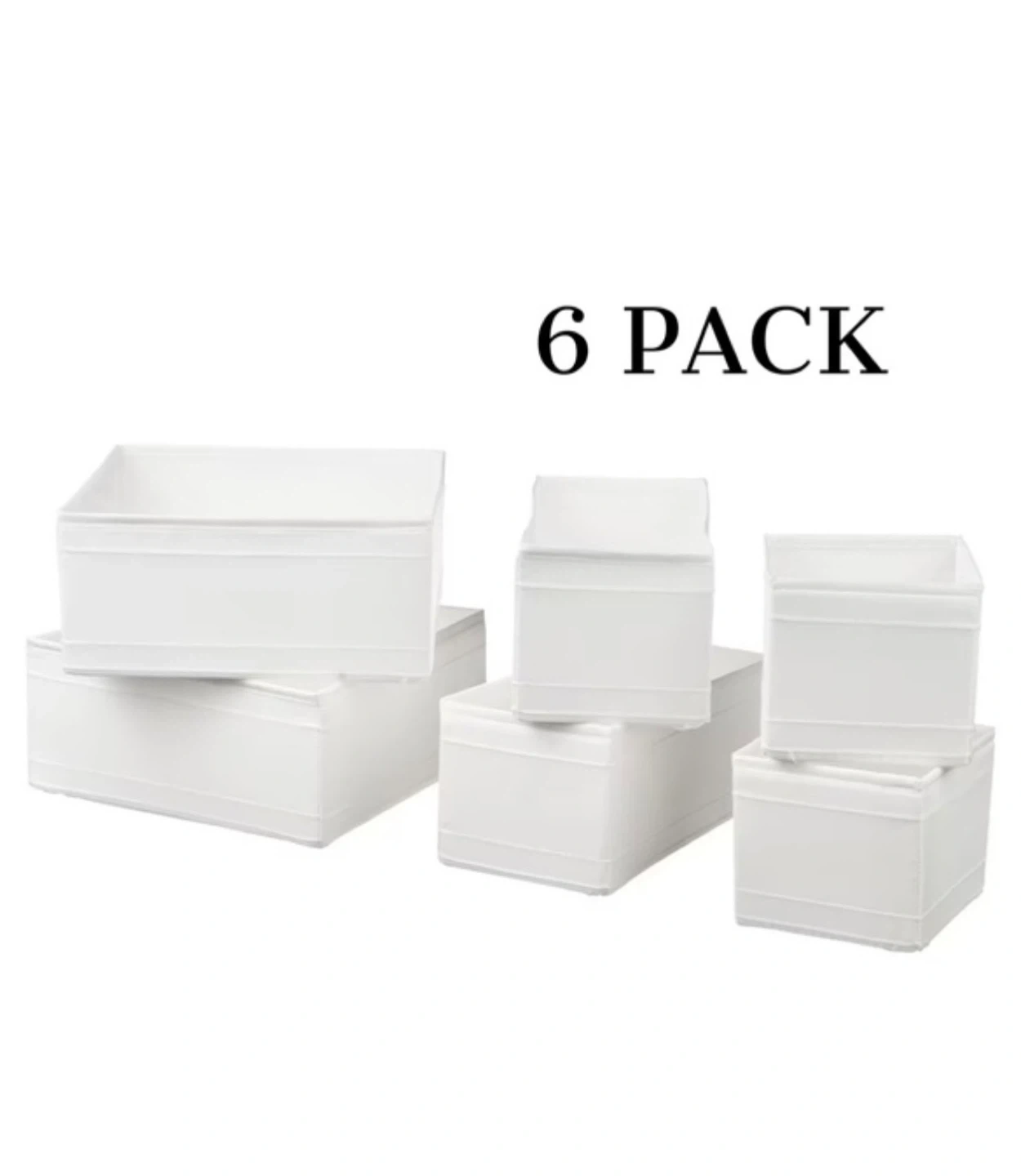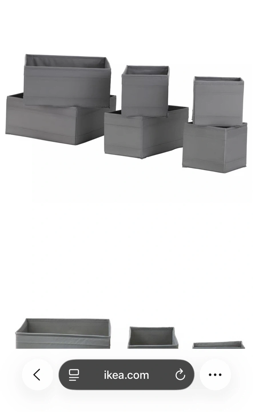 Selling a 6-pack of IKEA SKUBB boxes in white and dark grey! These are great for organizing drawers and shelves. They come in different sizes to fit your needs. Perfect for tidying up clothes, accessories, or anything else you want to keep neat and organized 2 sets 1 set of white color 1 set of grey color