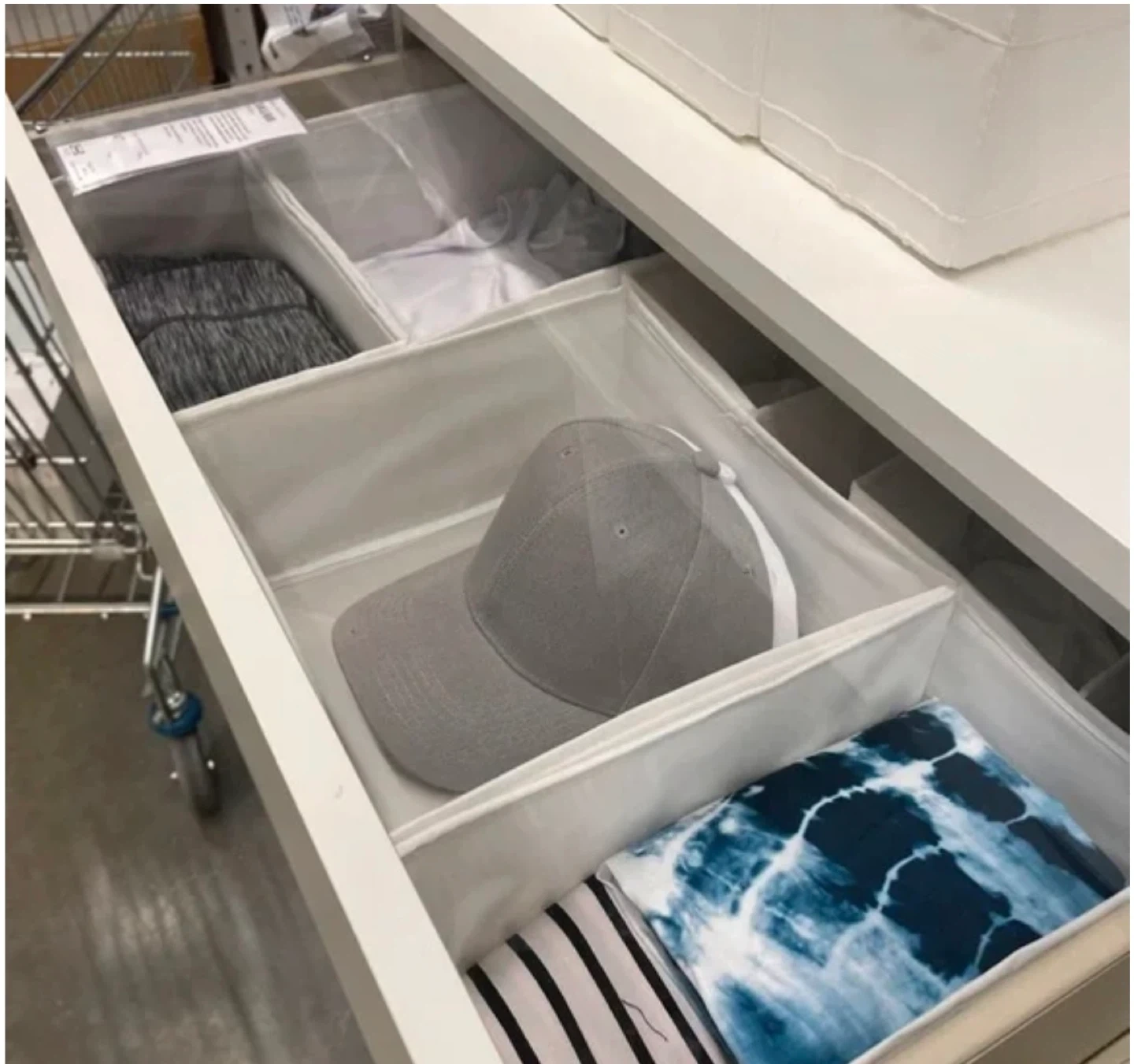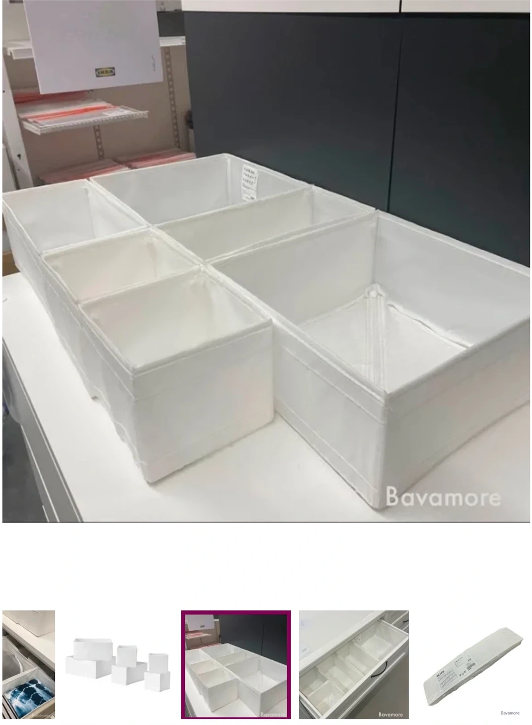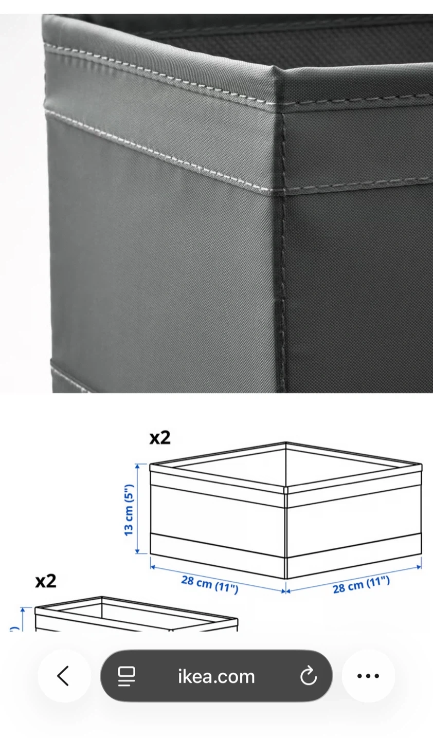 Selling a 6-pack of IKEA SKUBB boxes in white and dark grey! These are great for organizing drawers and shelves. They come in different sizes to fit your needs. Perfect for tidying up clothes, accessories, or anything else you want to keep neat and organized 2 sets 1 set of white color 1 set of grey color