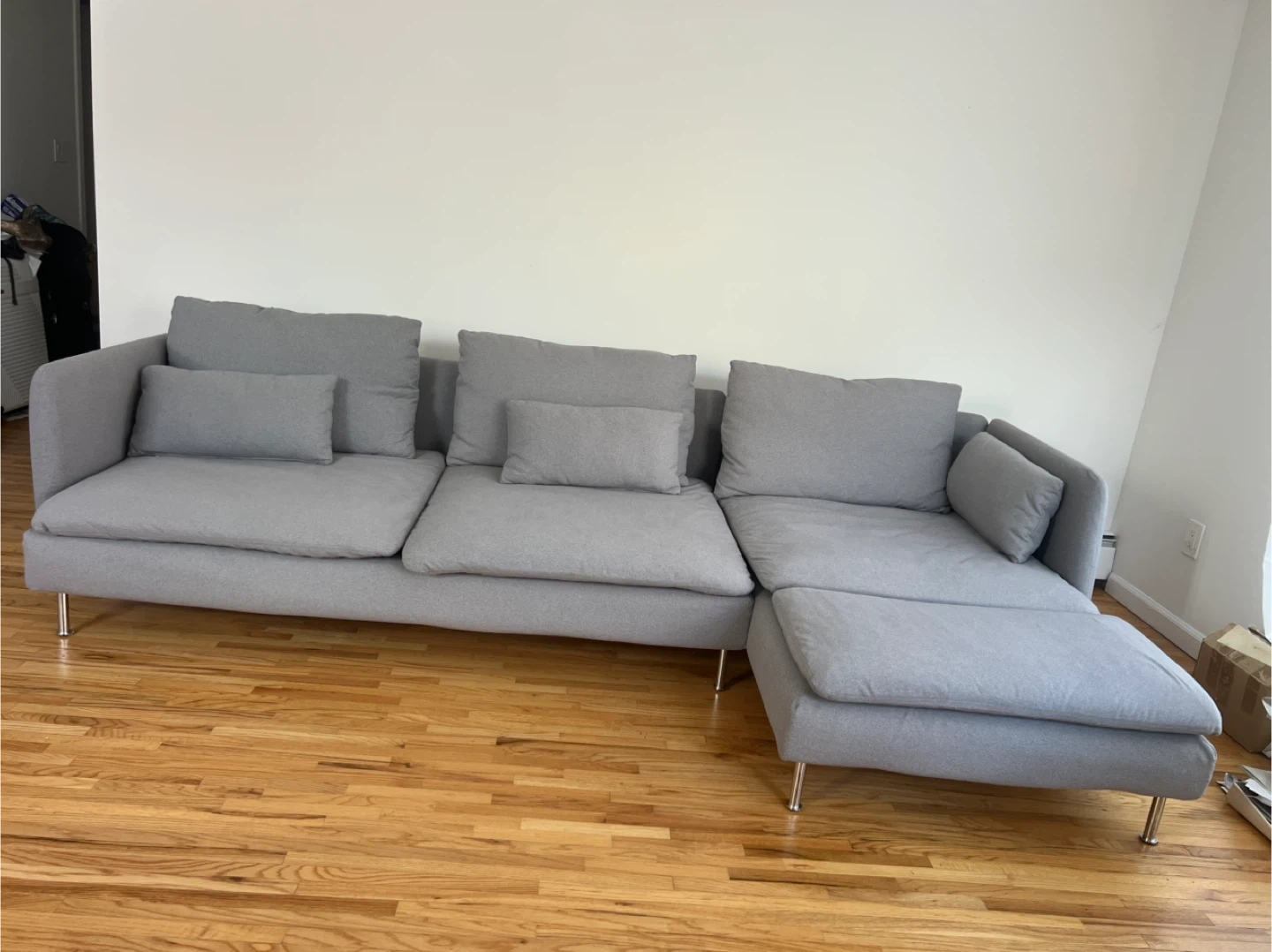 60Selling a comfortable IKEA Soderhamn sectional sofa with chaise (right side). Never used, so it’s in perfect condition—basically brand new! • Metal legs, minimalist design • Includes 5 cushions (3 backrest + 2 lumbar) • The cover is easy to keep clean as it can be machine-washed The dimensions are approximately 114 5/8" x 59 1/2" (length of the chase) Pickup in Bath Beach 🏡 DM if interested!