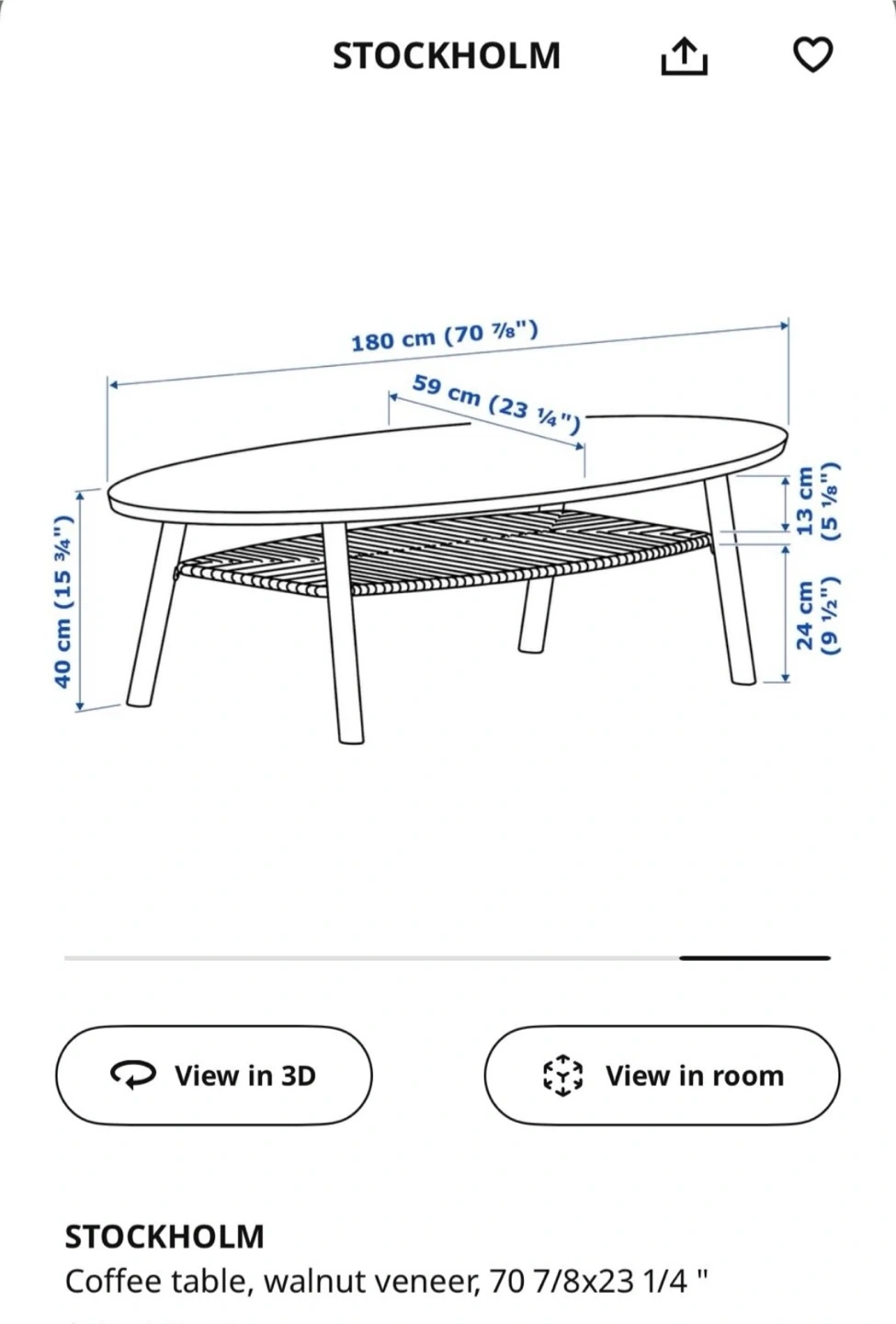 65Selling a lovely IKEA STOCKHOLM coffee table with a walnut veneer finish! It measures 70 7/8x23 1/4 inches. This table is perfect for adding a touch of elegance to your living room with its sleek design and practical shelf underneath
