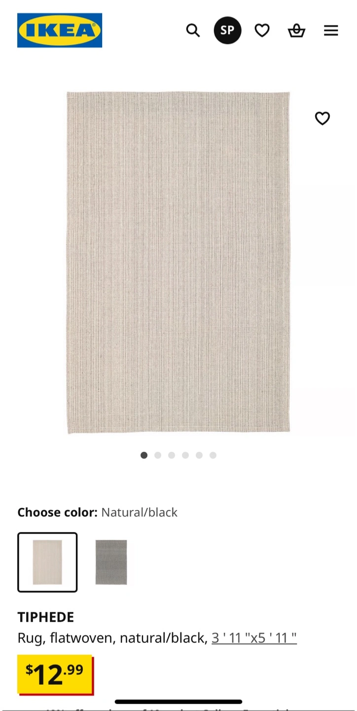Selling an IKEA TIPHEDE rug in natural/black color. It's a flatwoven rug with dimensions of 3'11" x 5'11". Originally bought for $12.99