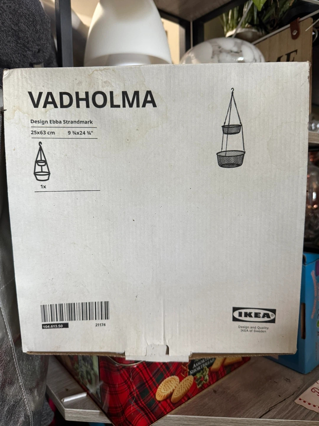 20Selling a brand new IKEA VADHOLMA hanging basket, still in its original box! The design is by Ebba Strandmark. It measures 25x63 cm or 9 3/4x24 3/4". Comes with one basket.