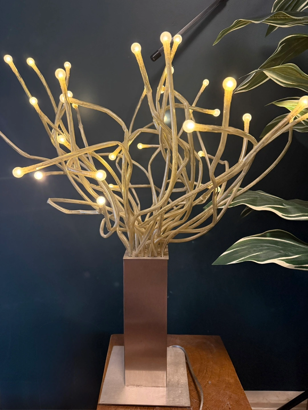 IKEA Table Lamp Base: 12inH X 7inL Light Height: (Flexible arrangement) 18in Add a touch of modern art to your space with this unique table lamp! The design features a collection of illuminated strands that create a visually interesting and warm ambiance. It's perfect for a living room, bedroom, or office space. It is in great condition!