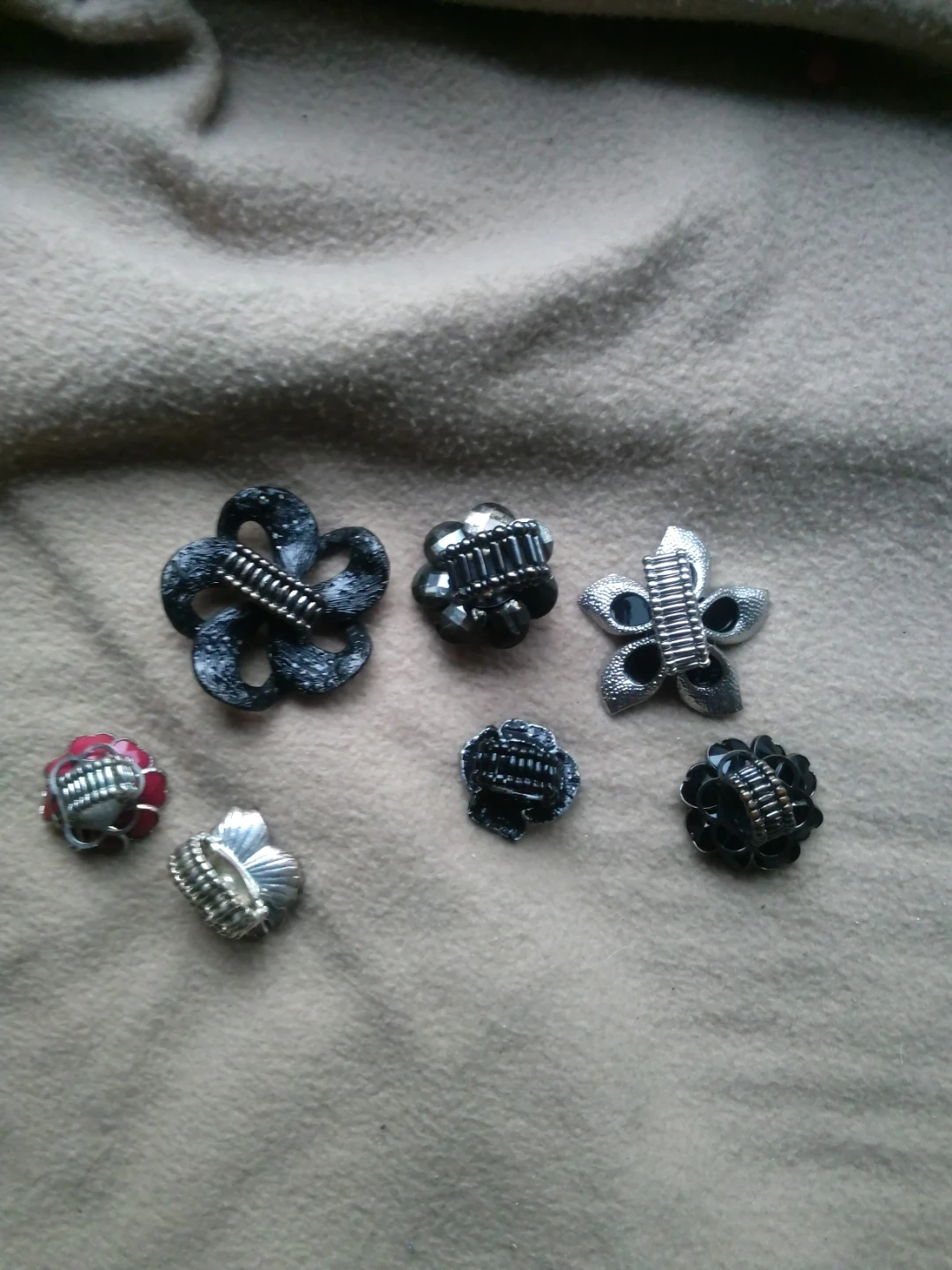 Set of 7 Flower-Shaped Decorative Buttons/Charms