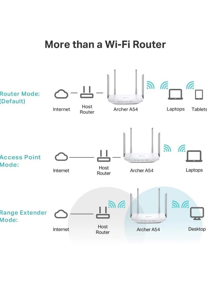 TP-Link AC1200 WiFi Router (Archer A54) - Dual Band Wireless Internet Router, 4 x 10/100 Mbps Fast Ethernet Ports, EasyMesh Compatible, Support Guest WiFi, Access Point Mode, IPv6 & Parental Controls. Feel free to message if you have any questions!