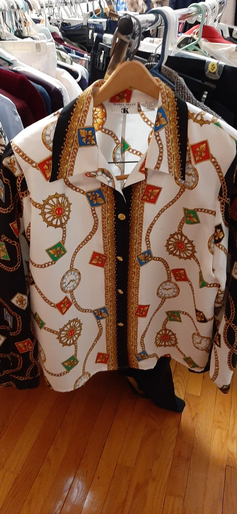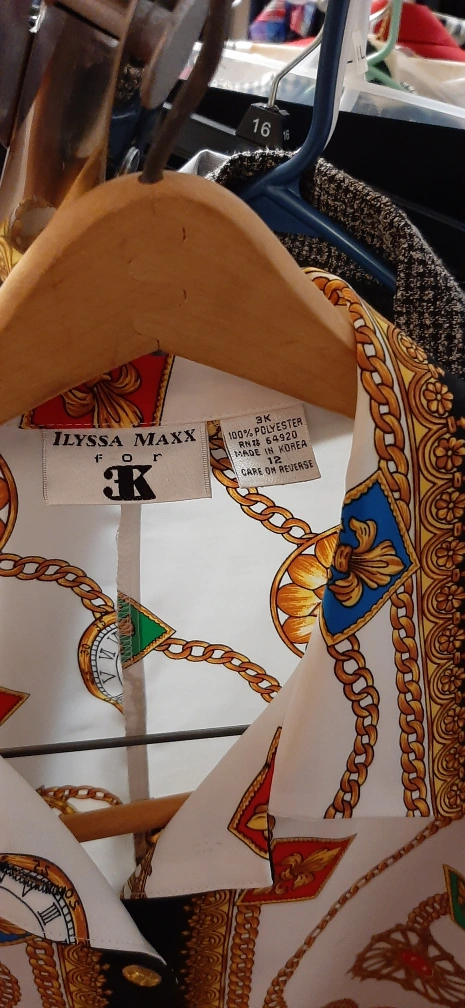 40Selling a vintage Ilyssa Maxx blouse in size 12! It features a unique chain print design. Made of 100% polyester and in great condition. Perfect for adding a touch of retro style to your wardrobe!
