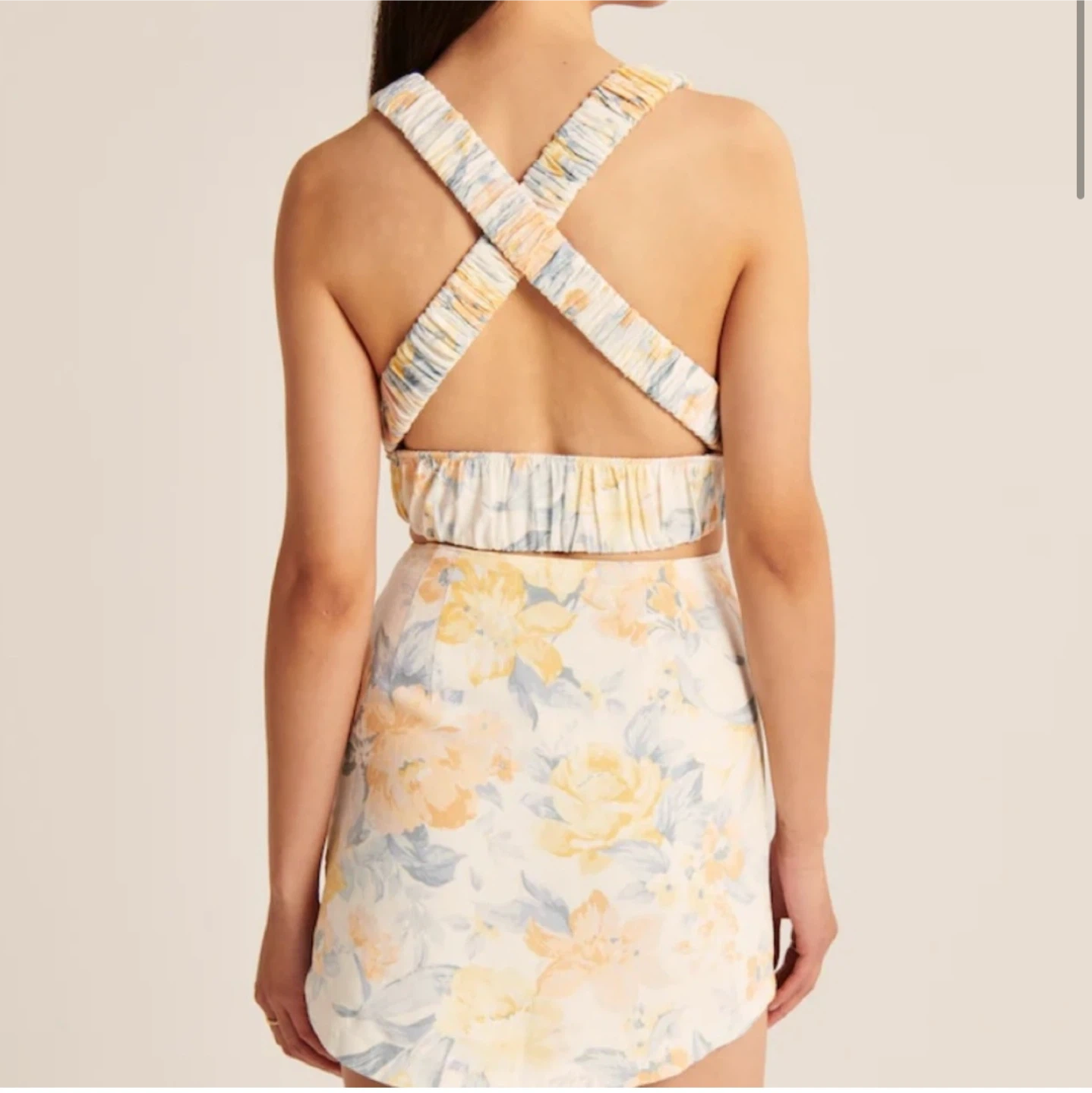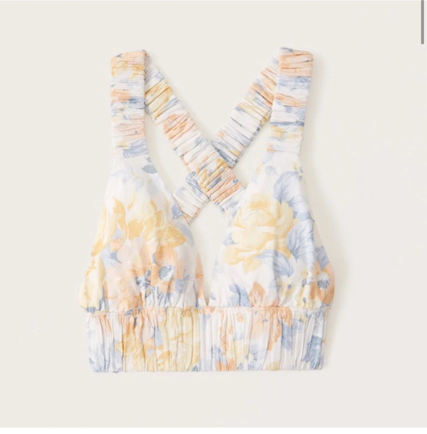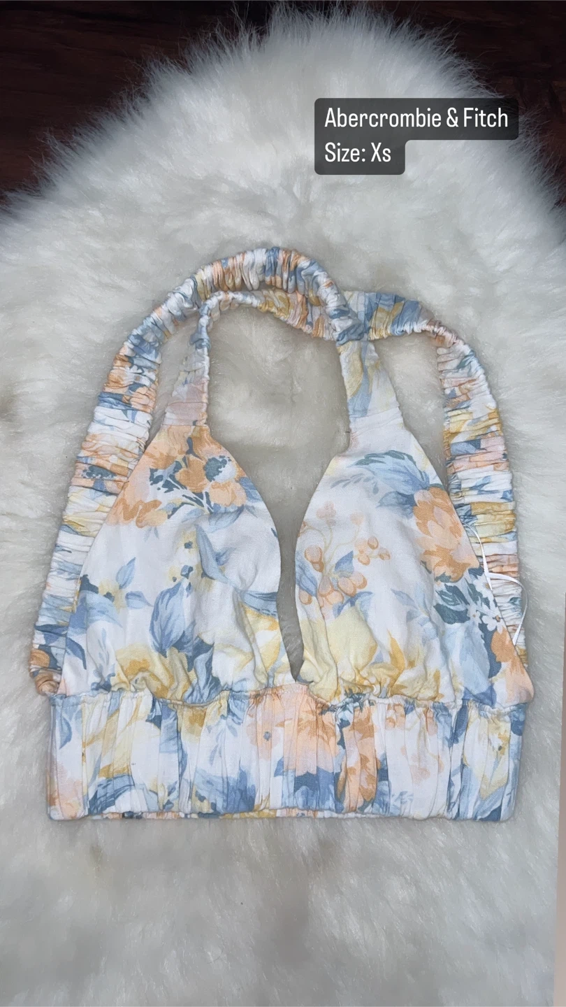 Abercrombie & Fitch halter crop top with a floral print. Elasticated straps and smocked back detail. Size is XS.