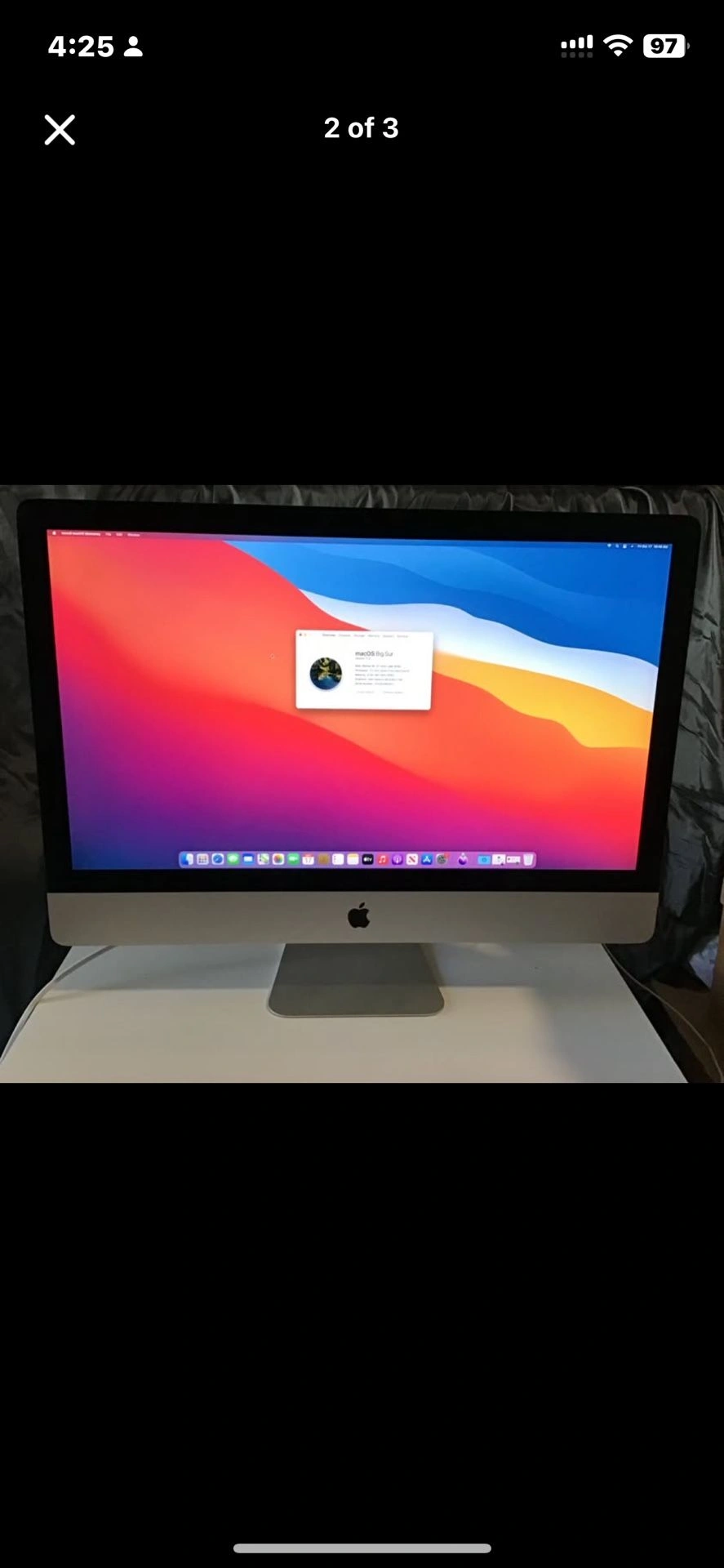 10Perfect for creative work, home office, or everyday use. Beautiful 5K display and reliable performance. 🔧 Specs: Processor: 3.2 GHz Quad‑Core Intel Core i5 Memory: 8 GB 1867 MHz DDR3 Display: 27‑inch Retina 5K (5120 × 2880), P3 Wide Color macOS: Clean install of macOS Monterey (latest supported) Camera: FaceTime HD Wi‑Fi + Bluetooth: 802.11ac Wi-Fi, Bluetooth 4.0 🔌 Ports: 2 × Thunderbolt 2 4 × USB 3.0 SDXC card slot Gigabit Ethernet 3.5mm headphone jack 🟢 Condition: Excellent — clean and fully working 🎁 Includes: Power cable Brand: Apple