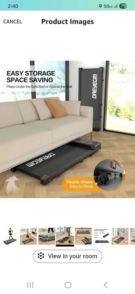 This is a DAEYEGIM 2 in 1 portable under desk treadmill. It comes with a remote control and an LED display. You can use it for walking or jogging. Feel free to message me if you have any questions!