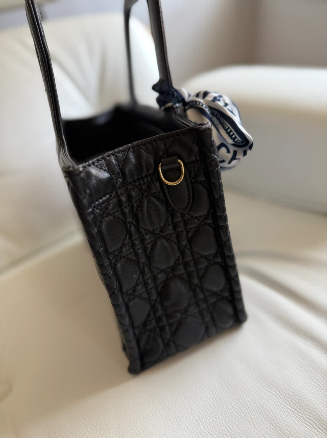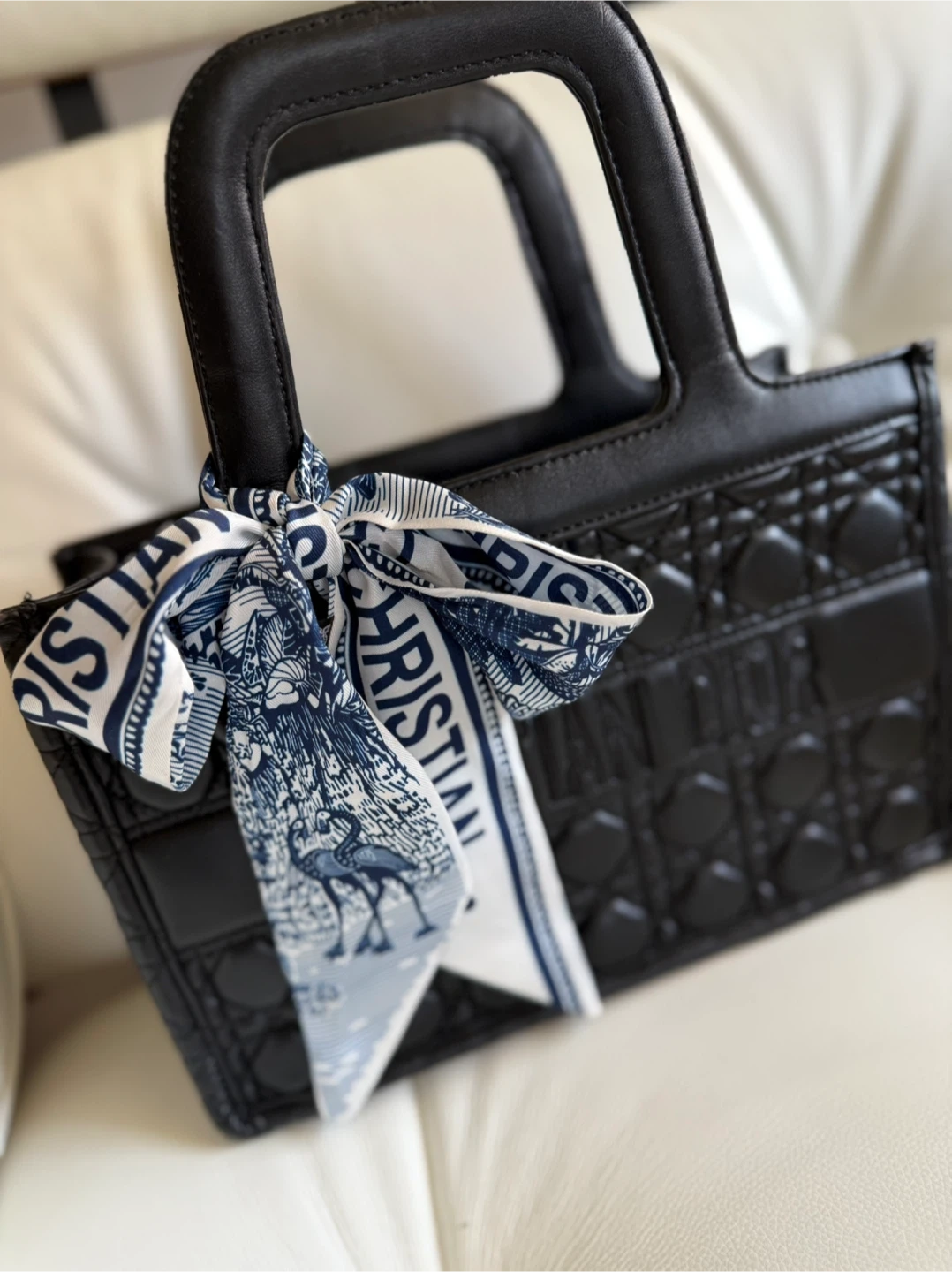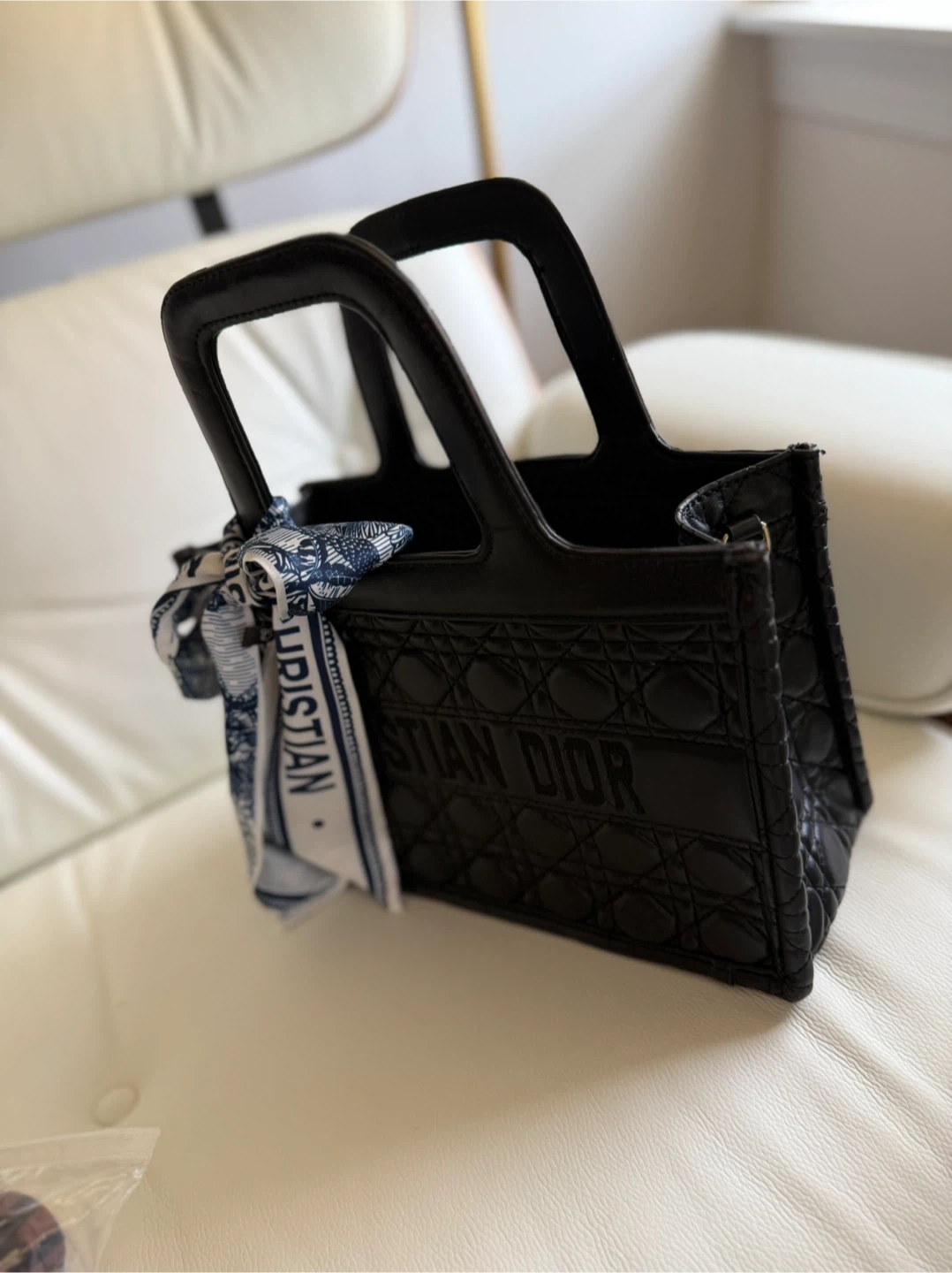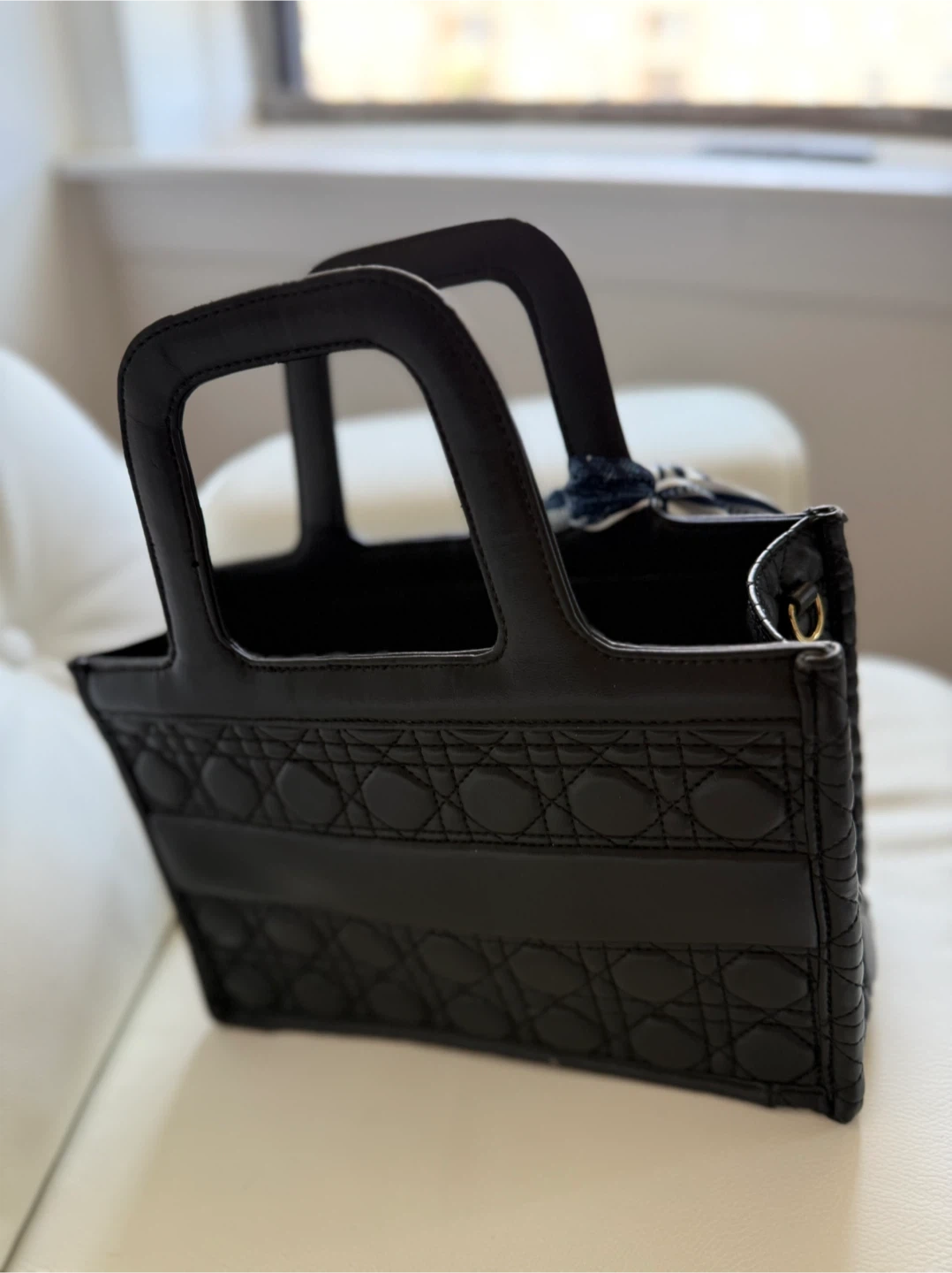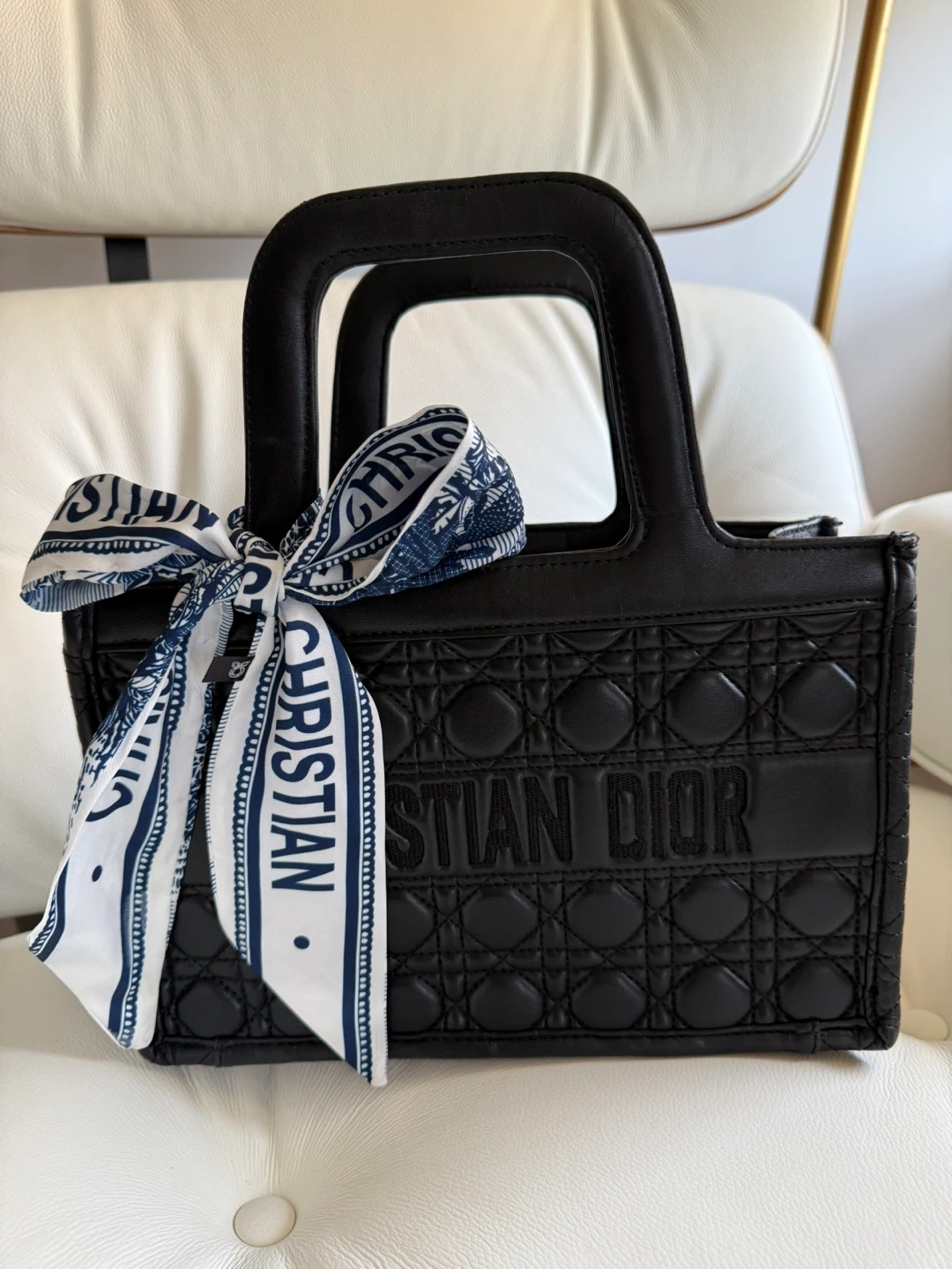 65Selling a Christian Dior black mini book tote. It's in great condition and comes with a stylish scarf tied to the handle. Perfect for carrying your essentials in style!