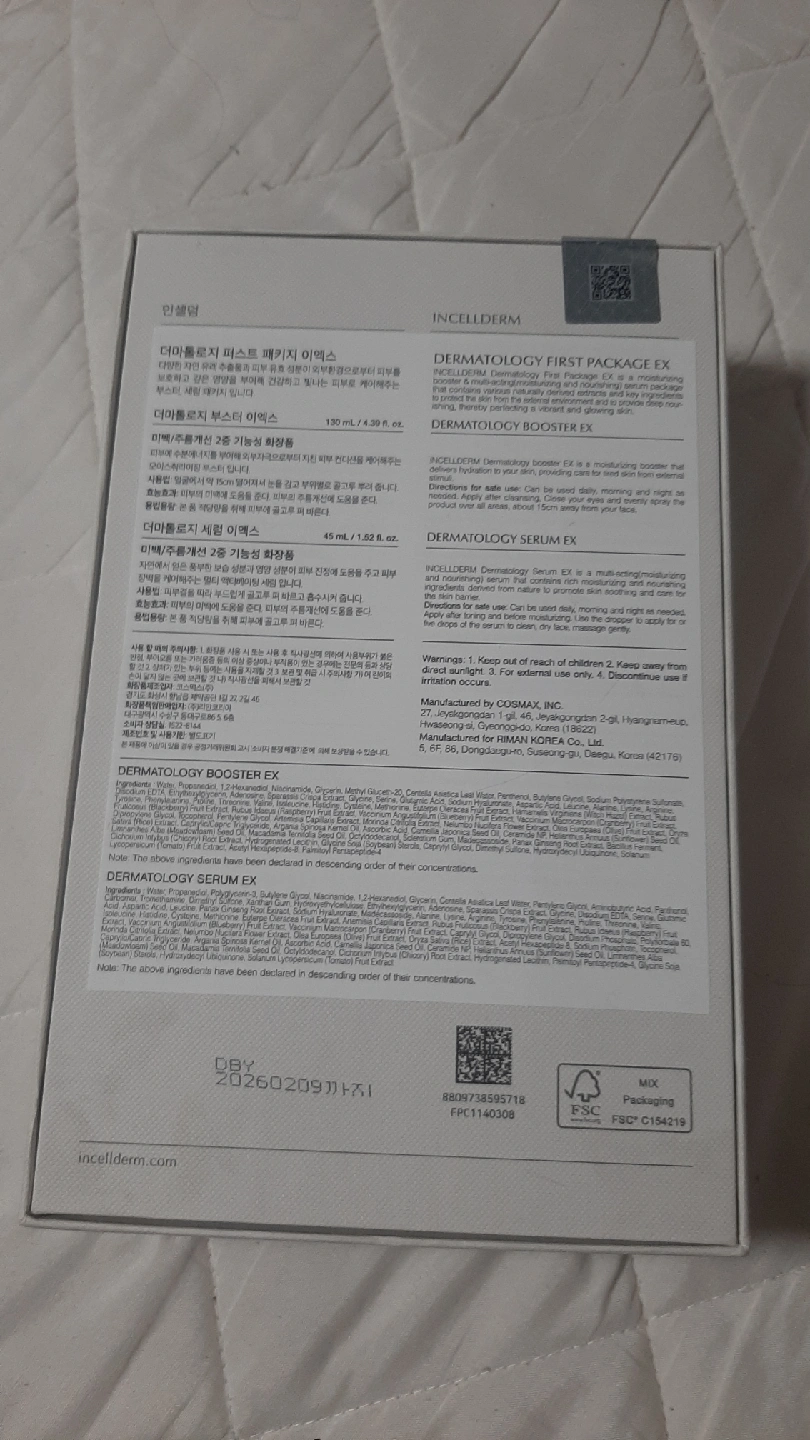 Selling a new Incellderm Dermatology First Package EX. It includes Dermatology Booster EX 130 ml/4.39 fl oz and Dermatology Serum EX 45 ml/1.52 fl oz. Manufacturing Date is 2026 February 09