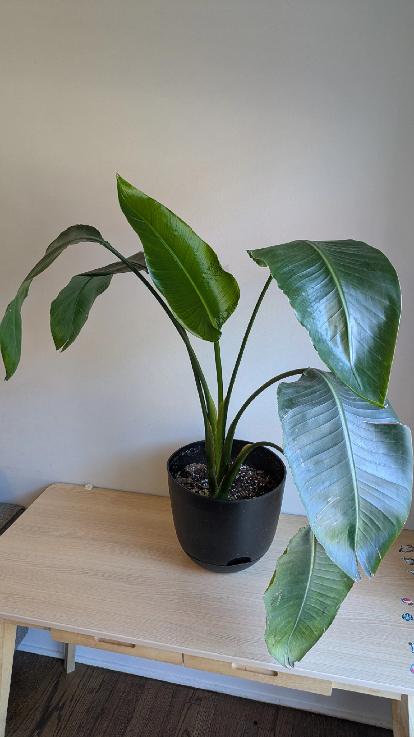 10selling this healthy bird of paradise in a big plastic pot with reservoir. premium quality soil. great for any space!