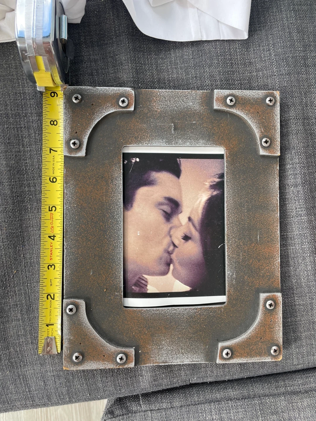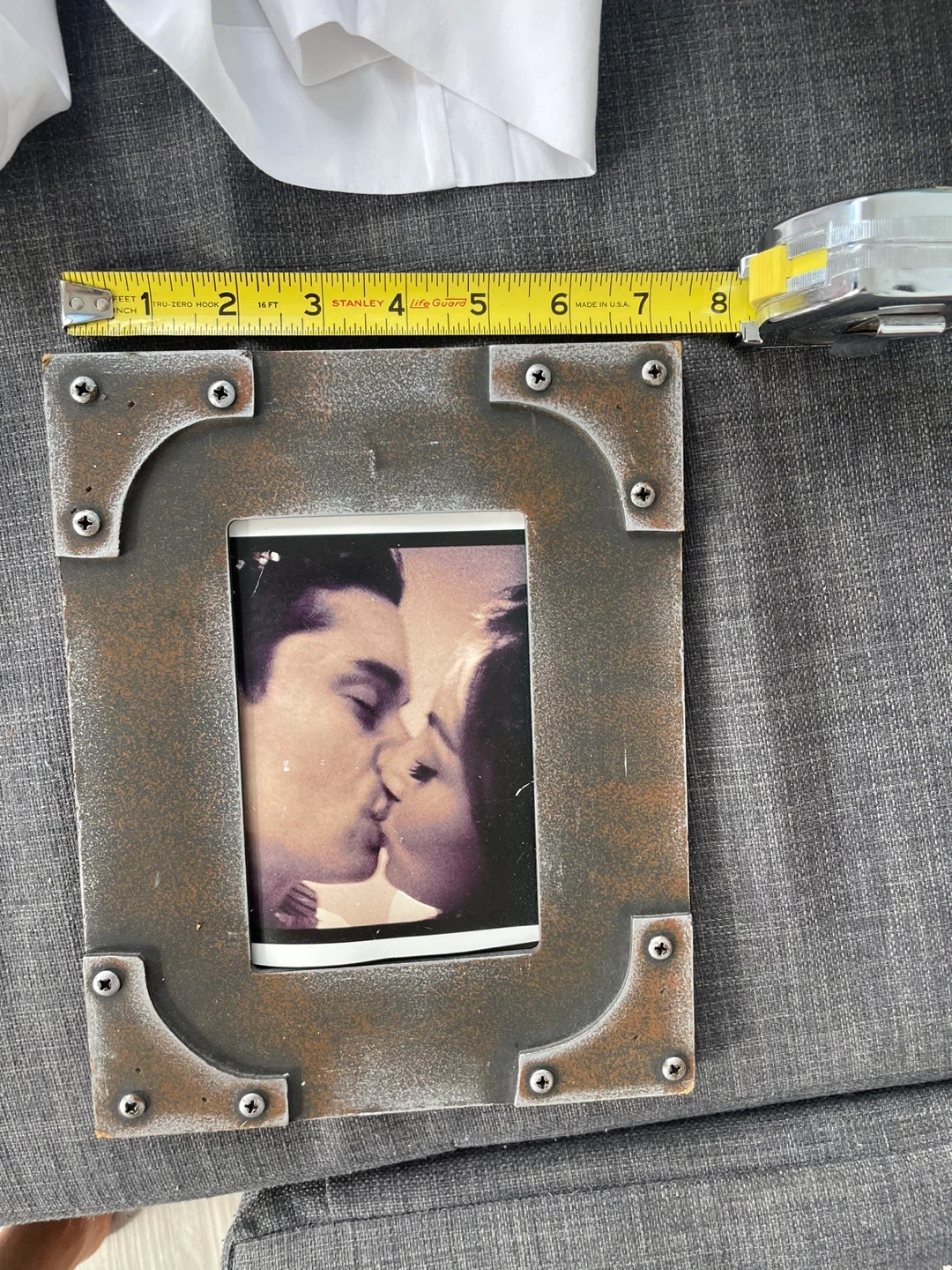 Here's a cool industrial-style photo frame! It measures approximately 7x7 inches. It's perfect for adding a unique touch to your decor
