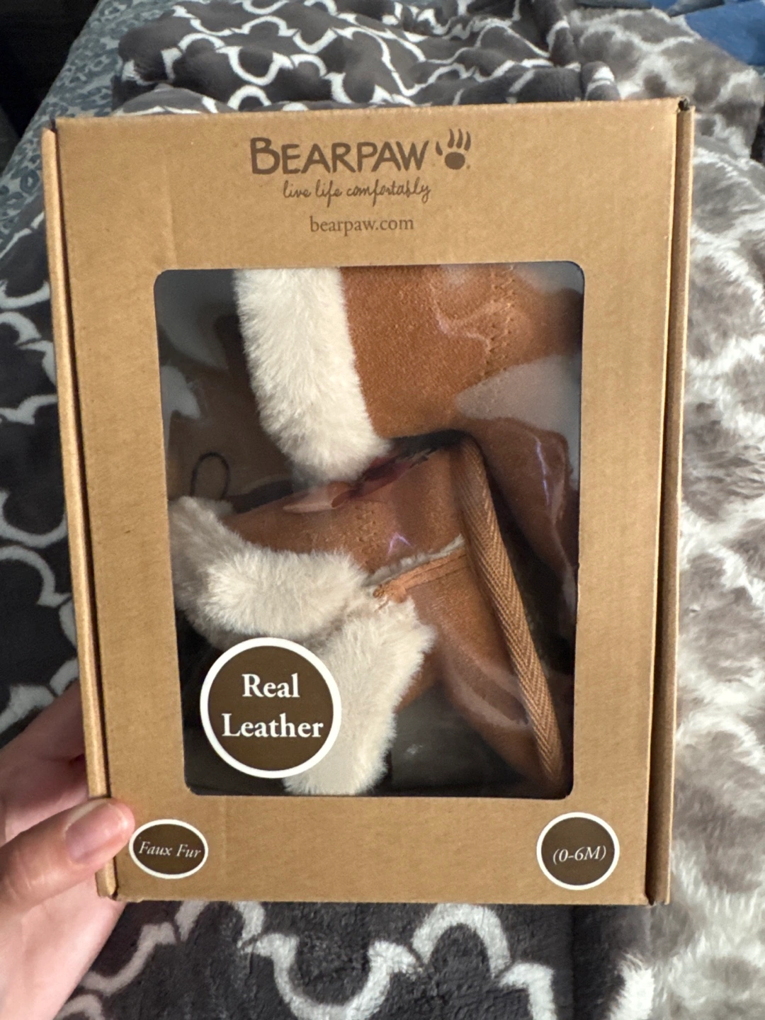 65Adorable Chestnut color winter booties for infant girl 0-6 months Real Leather Brand new in box with tags removed but present in box Never worn $3 if you purchase a jacket as well.