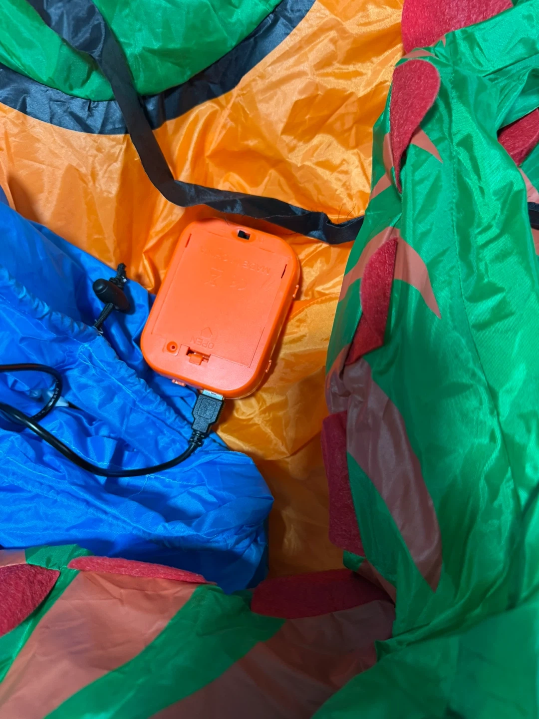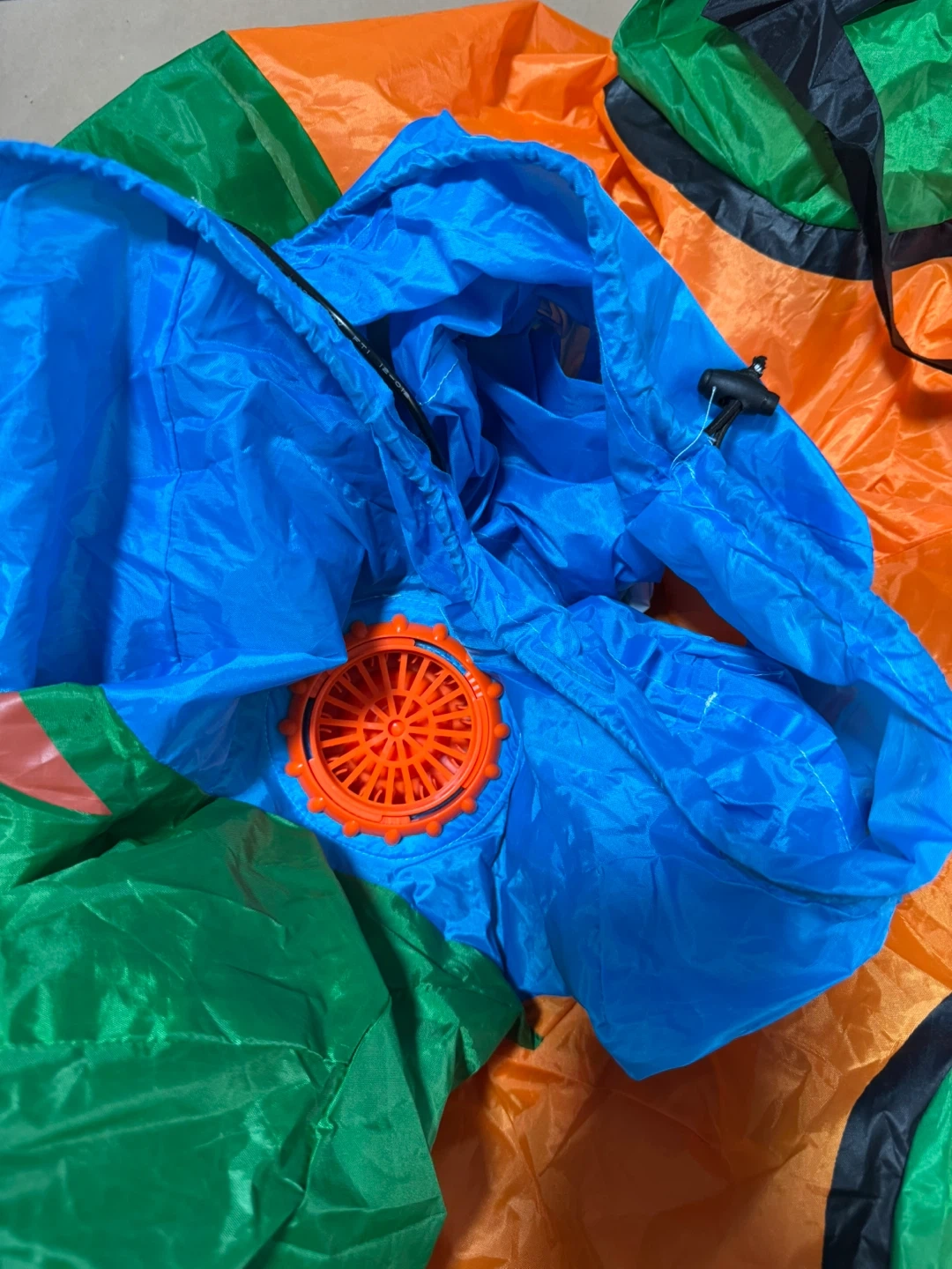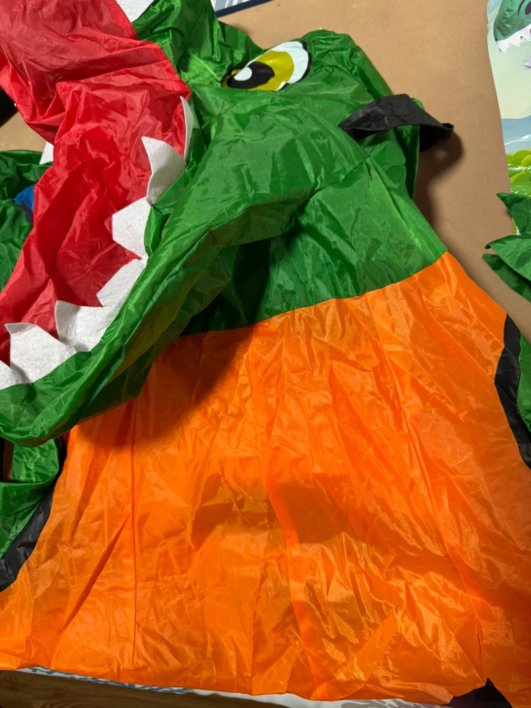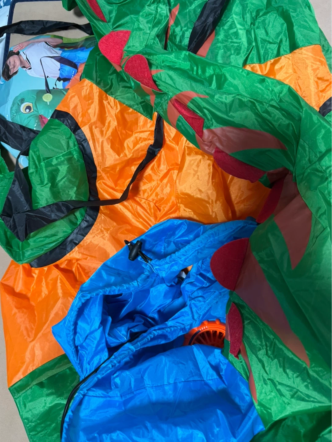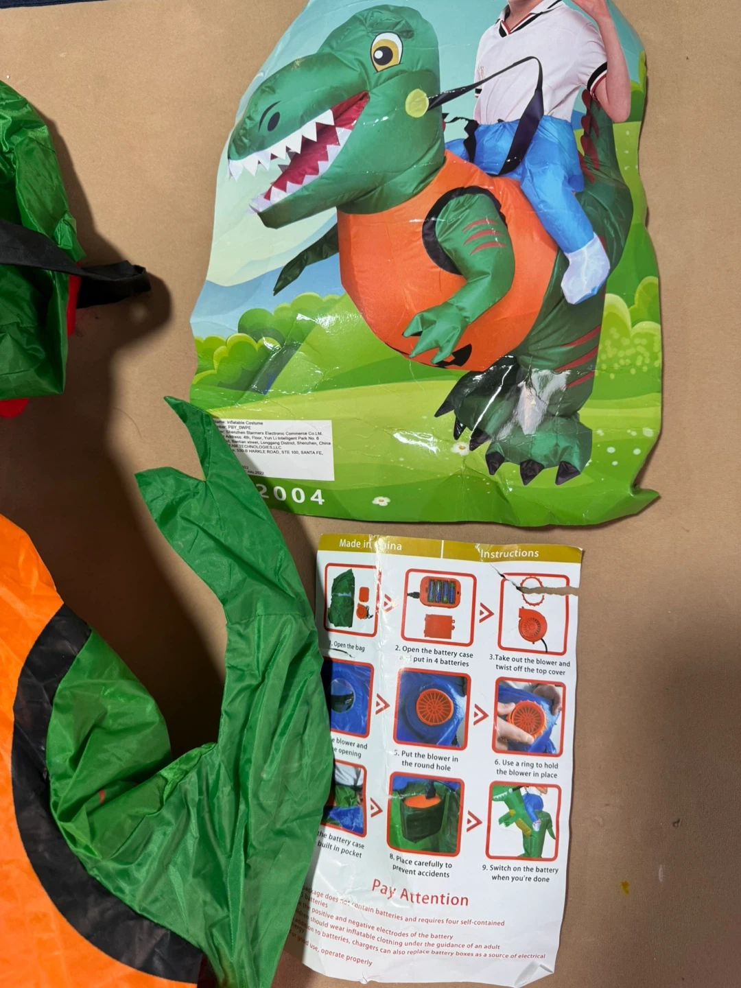 Get ready to roar with this fun inflatable dinosaur costume! It's perfect for parties, Halloween, or just horsing around. The costume is colorful and includes the blower and battery case.