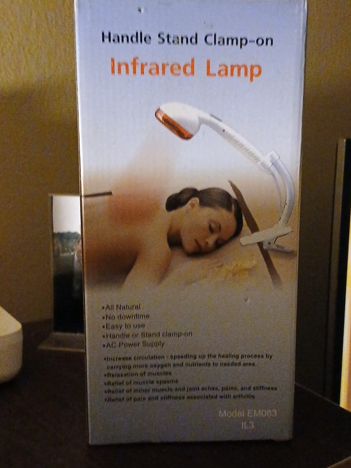 Selling an Infrared Lamp with a handle stand and clamp-on feature! It's all natural, easy to use, and comes with an AC power supply. It's designed to increase circulation, promote relaxation of muscles, and provide relief from muscle spasms, minor muscle and joint aches, pains, and stiffness associated with arthritis. Model number is EM063