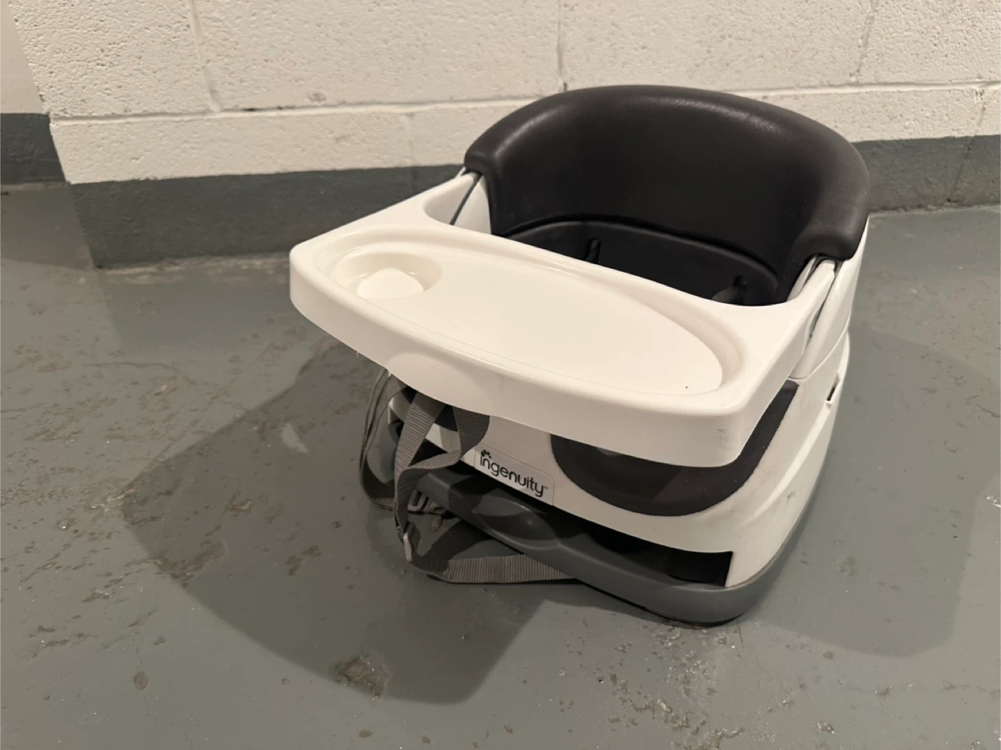 10I'm selling an Ingenuity Baby Base 2-in-1 seat! This seat is white and gray. It's perfect for little ones who are learning to sit up. It comes with a tray for feeding or playtime, and it's easy to clean. This seat is in good condition and ready for a new home