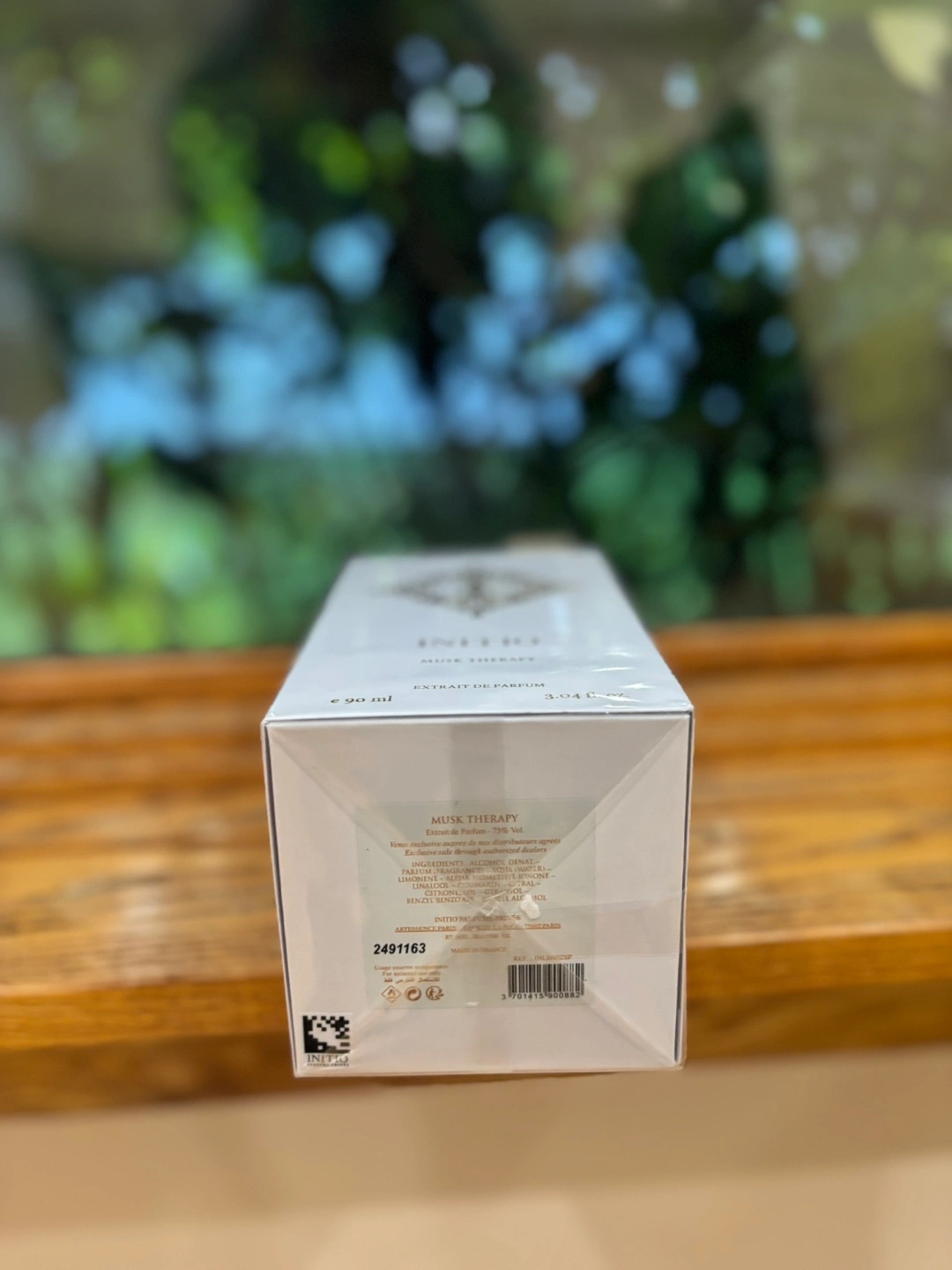 White box. A bottle of perfume. It is an Extrait De Parfum. 90 ml, 3.04 fl oz. Try using this perfume to unwind after a long day.