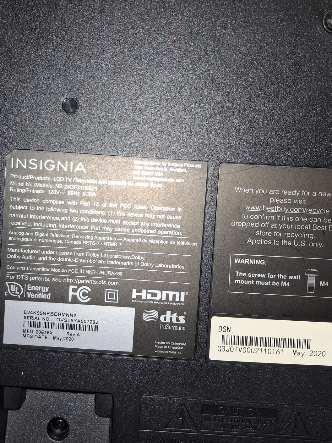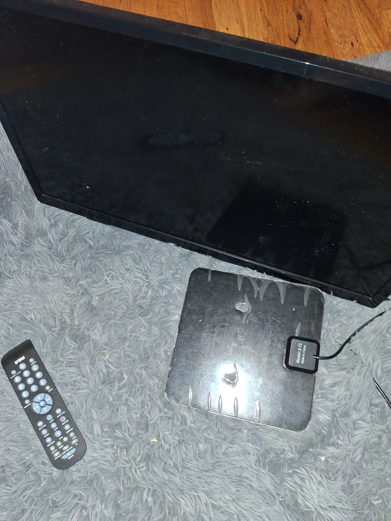 94Black television with remote and stand, perfect for a bedroom or small space. No cables included.