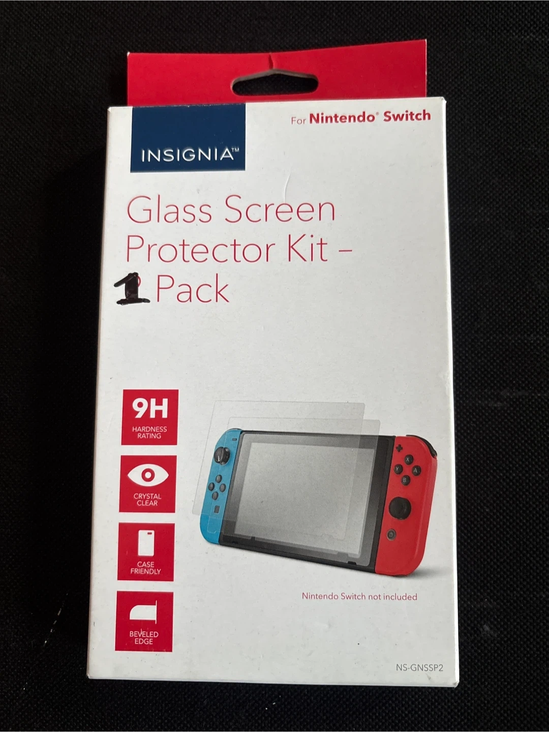 Selling a new Insignia Glass Screen Protector Kit for the Nintendo Switch. This kit includes one screen protector with 9H hardness rating for crystal clear protection. It's also case friendly and has a beveled edge. Perfect for keeping your Nintendo Switch screen safe! Local pick up Only !!!