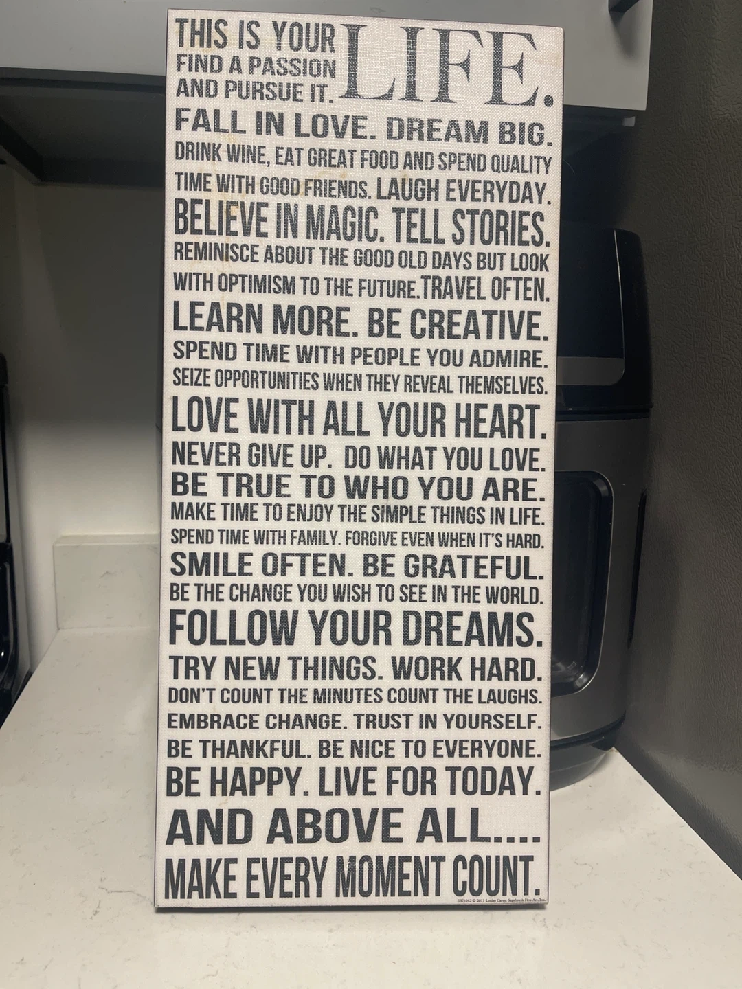 70This is a cute wall decor piece with lots of inspirational quotes. It's in great condition and ready to brighten up your space!