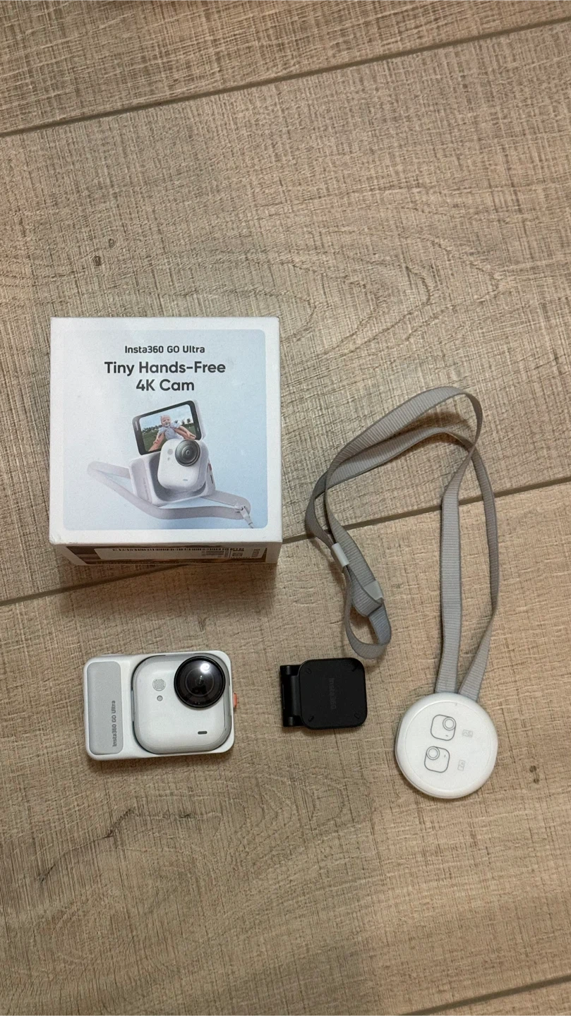 73Insta360 GO Ultra Tiny Hands-Free 4K Cam It comes with its original box and all the components you see in the pictures. - Insta360 Go Ultra 4K Cam - Magnetic Easy Clip - Magnet pendant - Quick Release Safety Cord (in box) I bought it used conditions from B&H photo videos at $394.95, so it had minor scratches from beginning. I’m selling it cause I bought it about 2 months ago but not using it that well as much as I thought.