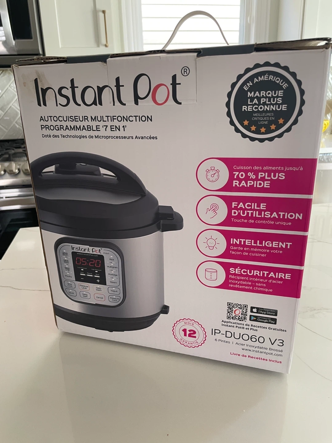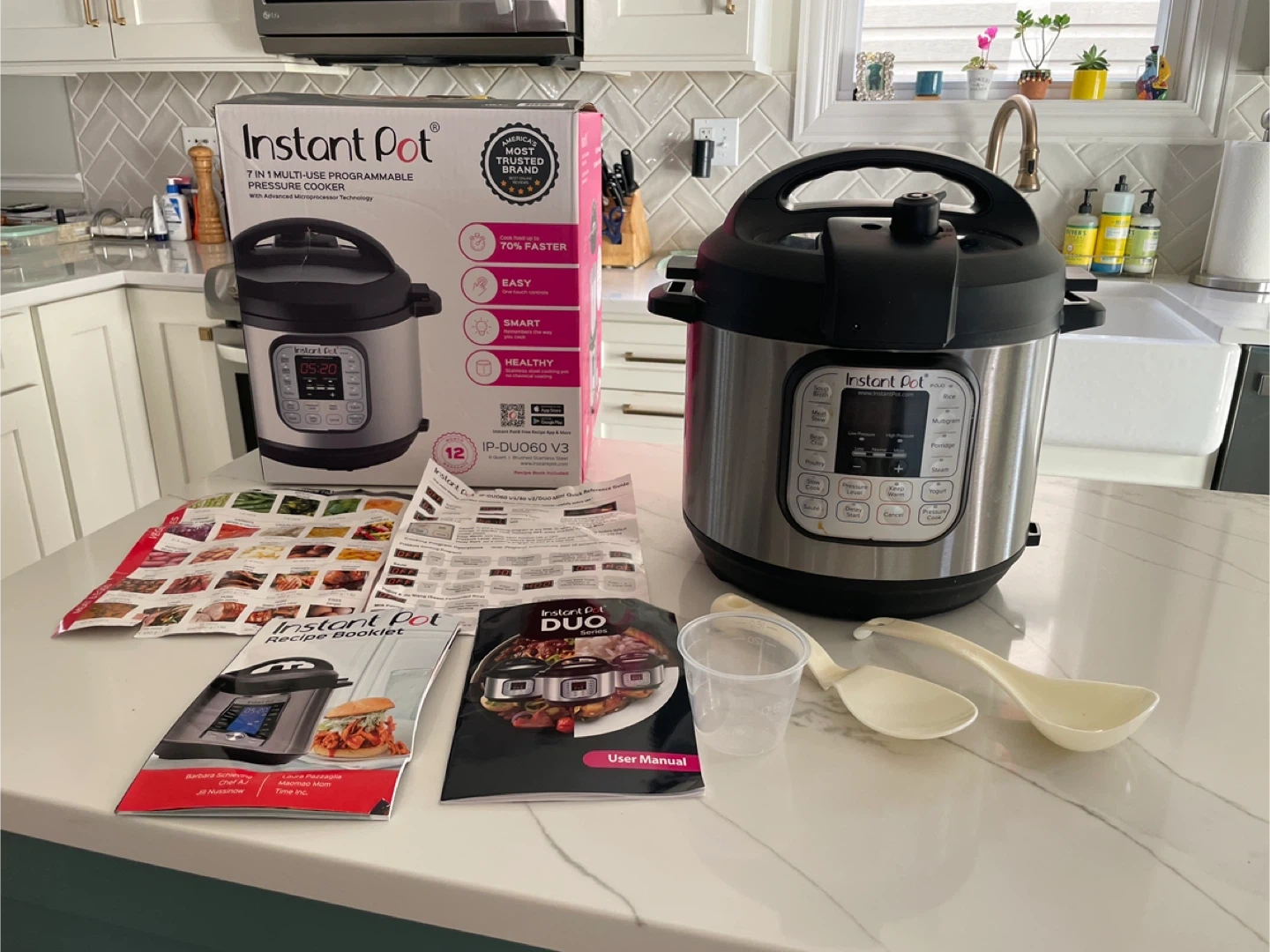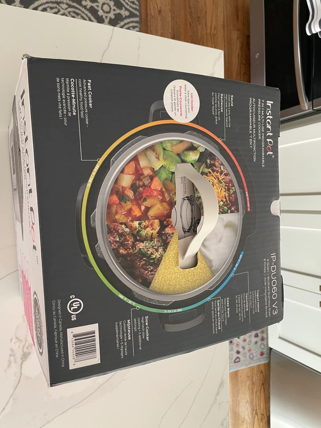 Selling an Instant Pot 7-in-1 pressure cooker! 6 quart model, it functions as a pressure cooker, slow cooker, rice cooker, yogurt maker, steamer, sauté pan, and warmer. It has 10 safety mechanisms and easy one-touch controls. It can cook food up to 70% faster! It's the IP-DUO60 V3 model and comes with a recipe book.