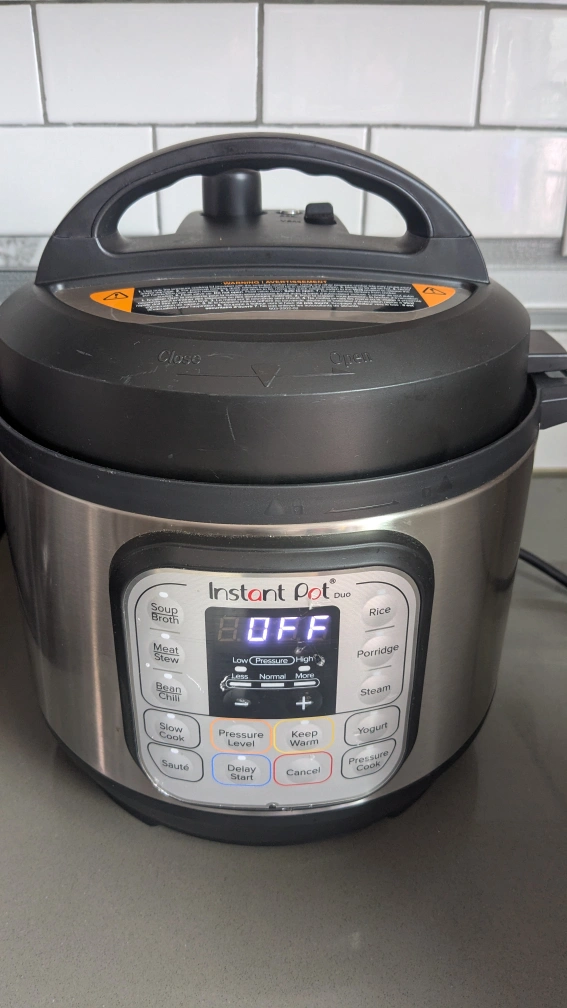 Selling an Instant Pot Duo electric pressure cooker. It's in good condition and ready to help you make delicious meals! It features multiple functions like pressure cooking, slow cooking, rice cooking, steaming, sautéing, yogurt making, and warming. Perfect for quick and easy cooking!