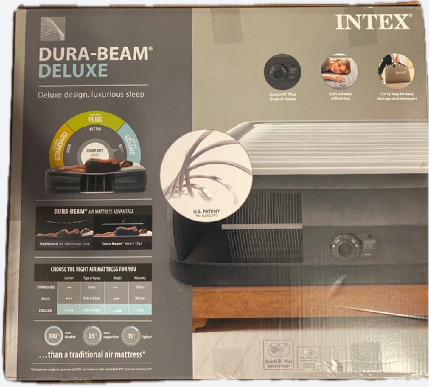23An air mattress with a built-in pump for your comfort. A carry bag allows for easy storage and transport, making it the perfect companion for a relaxing getaway. New