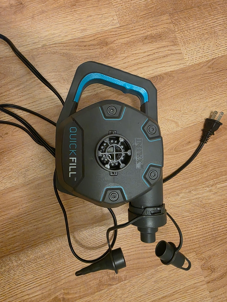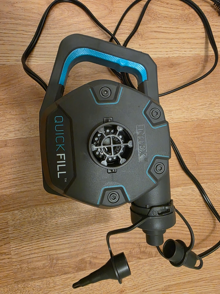 Selling an Intex QuickFill electric air pump. It's in perfect condition and ready to inflate your pools, rafts, and more! It comes with multiple nozzle attachments to fit different valve sizes