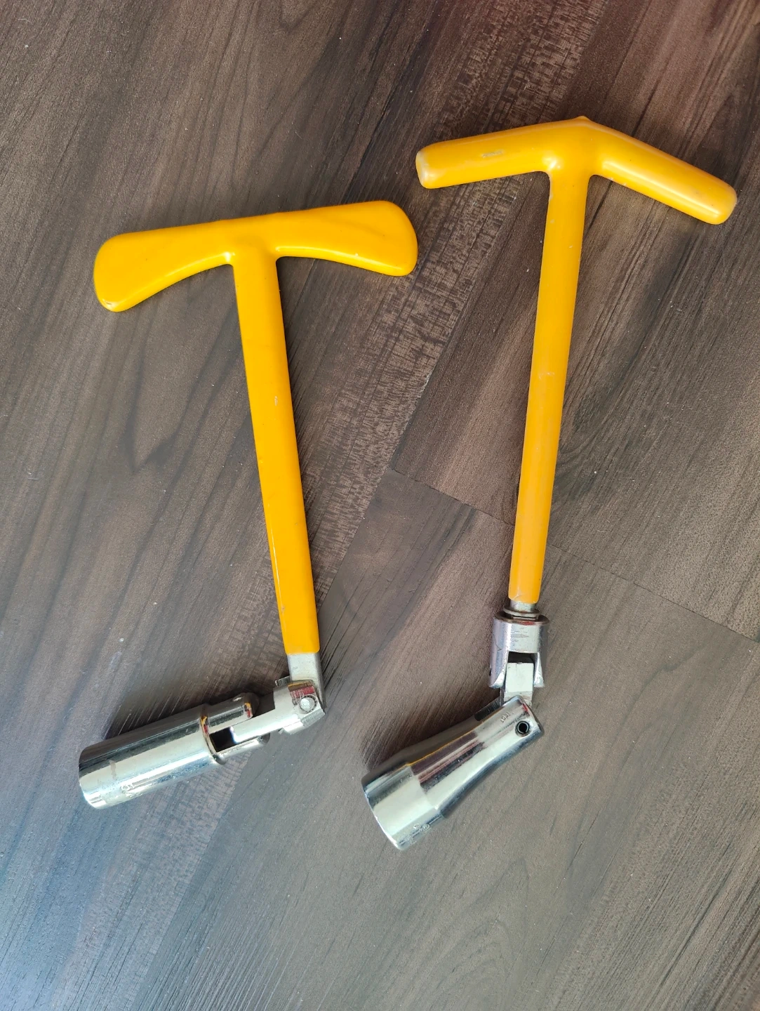 This set includes two T-handle spark plug socket wrenches. One is 5/8 and the other is 13/16".