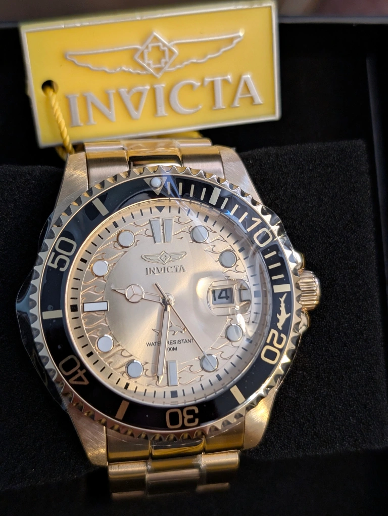 Open to offers. Sold out online! gold Invicta Pro Diver men's watch. Never tried on. original packaging/certs. -43mm Stainless Steel - Water resistance: 100M