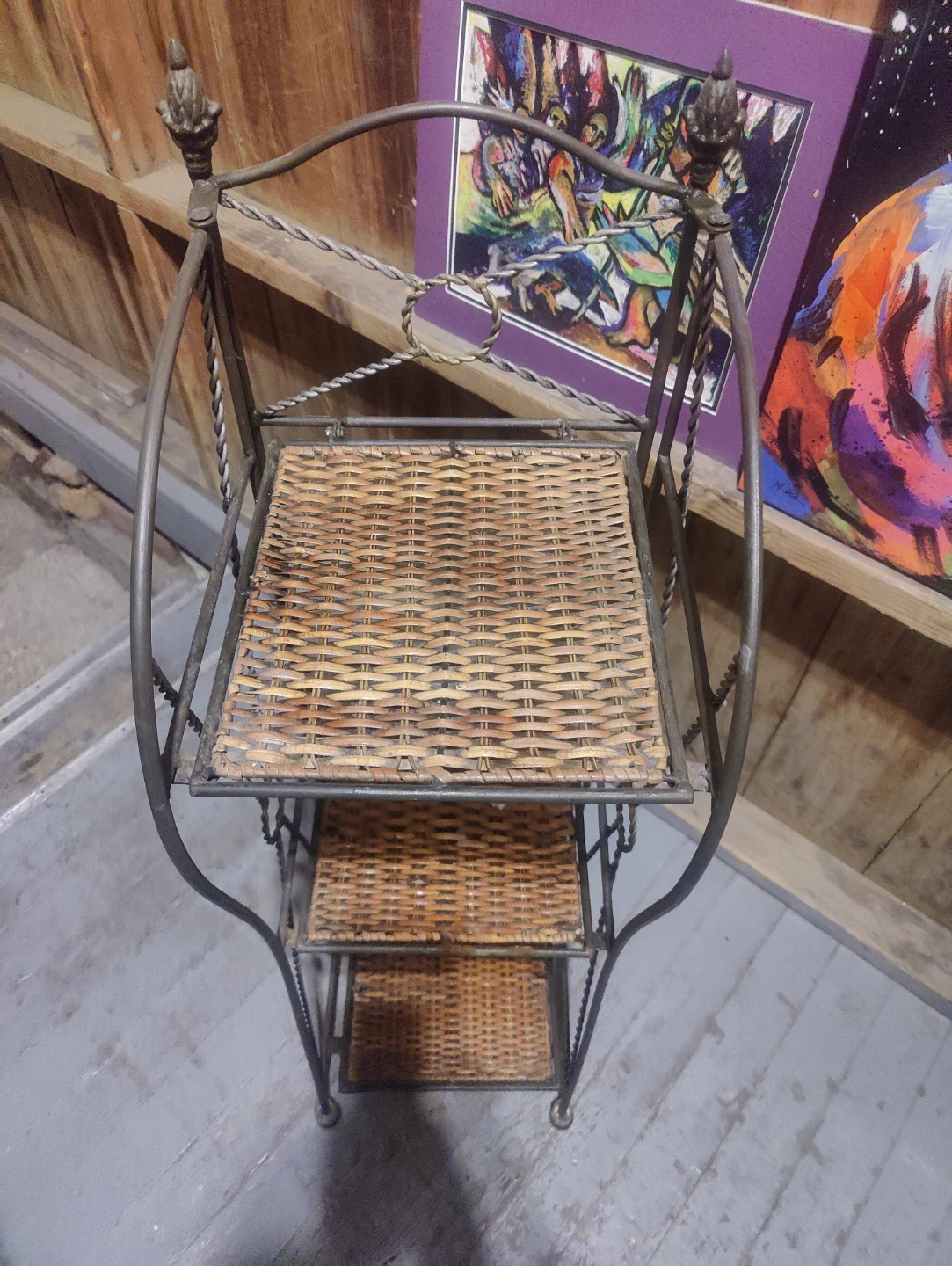 Wicker and Metal Tiered Shelf Stand