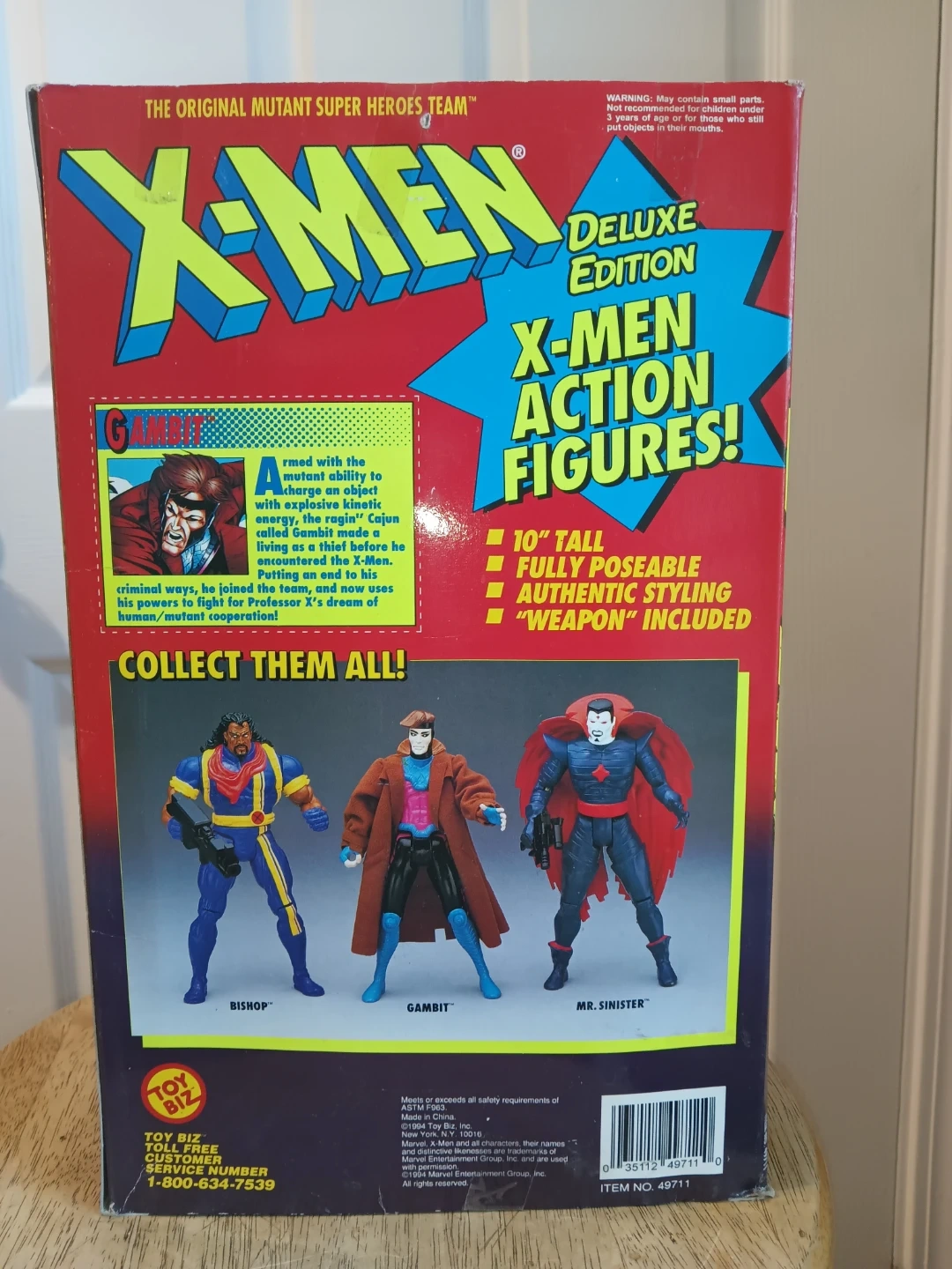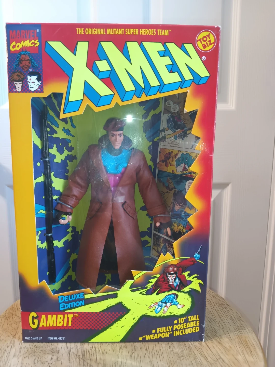 Selling a vintage X-Men Gambit Deluxe Edition action figure from Toy Biz! This collectible is 10" tall, fully poseable, and comes with his signature "weapon". A great addition for any Marvel or X-Men fan! Packaging has some wear,dings and bends. See pictures. Sold as is. Figure is from 1994.