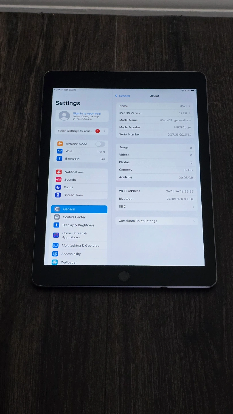 128GB Apple iPad 7th Gen with latest ipad OS