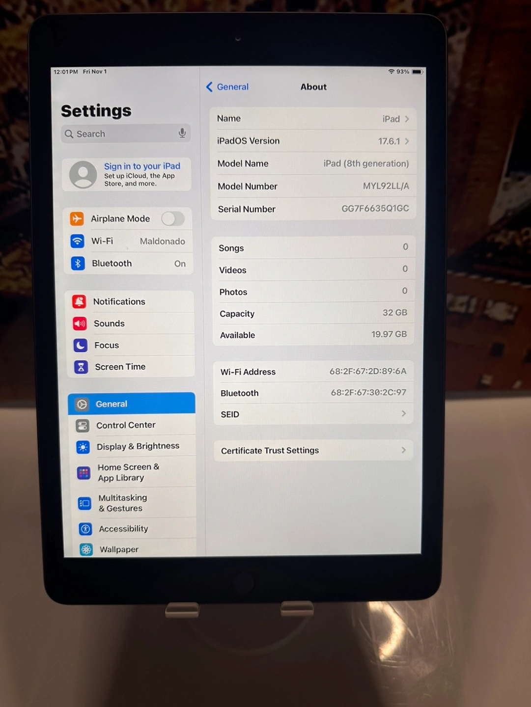 101iPad 8th Gen A2270 #1 Color: Space Gray Storage: 32GB Model Number: MYL92LL/A Serial Number: GG7F6635Q1GC No Box No Charger 80% Battery Health Local pick up by Williamsbridge in the Bronx. Local meet up in midtown by Sutton Place could be arranged as well. Delivery also available for an additional $50 and a 20% deposit of the item within the Bronx and Manhattan.