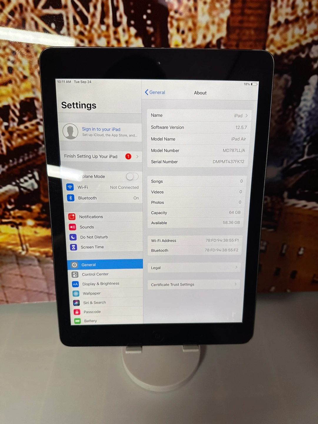 92iPad Air Color: Space Gray Storage: 64GB Model Number: MD787LL/A Serial Number: DMPMT437FK12 No Box No Charger Local pick up by Williamsbridge in the bronx. Local meet up in midtown by Sutton place could be arranged as well. Delivery also available for an additional $50 and a 20% deposit of the item within the Bronx and Manhattan.