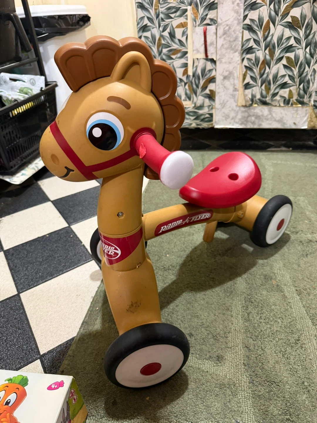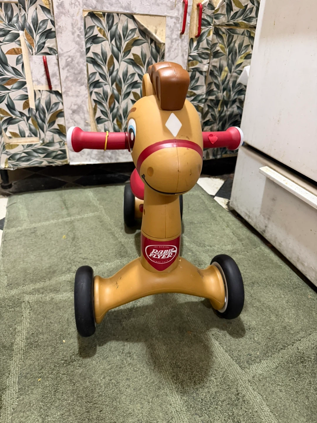 This Radio Flyer ride-on toy is designed like a horse. It's perfect for little ones learning to balance and get around. Durable plastic construction with easy-grip handlebars.