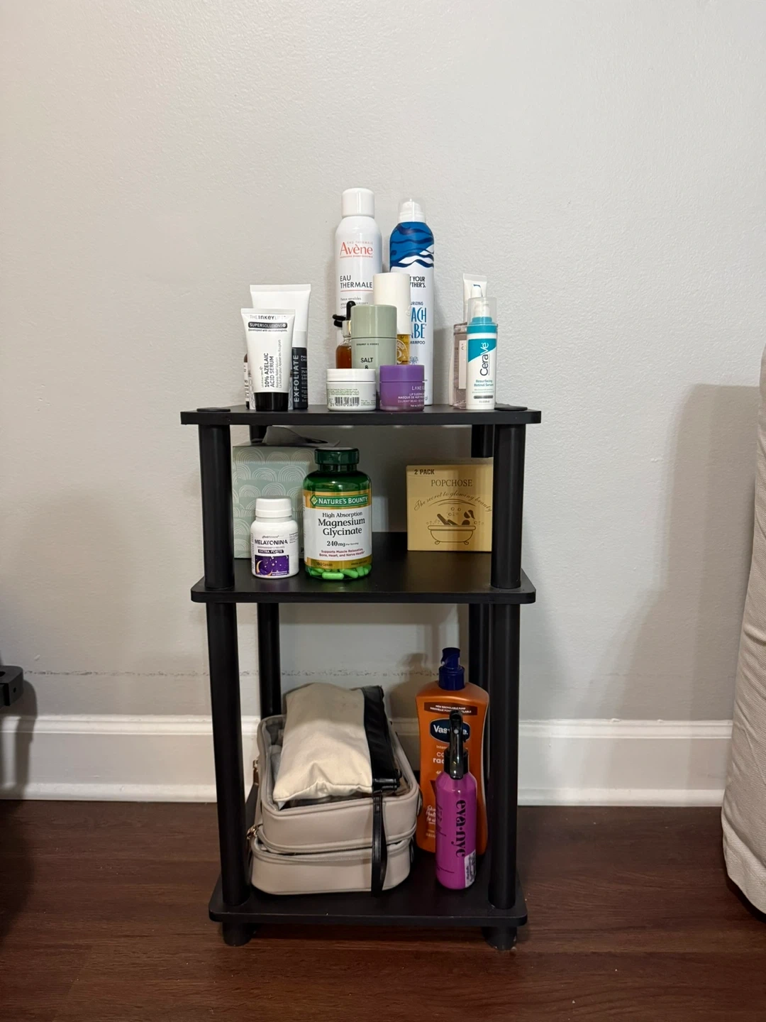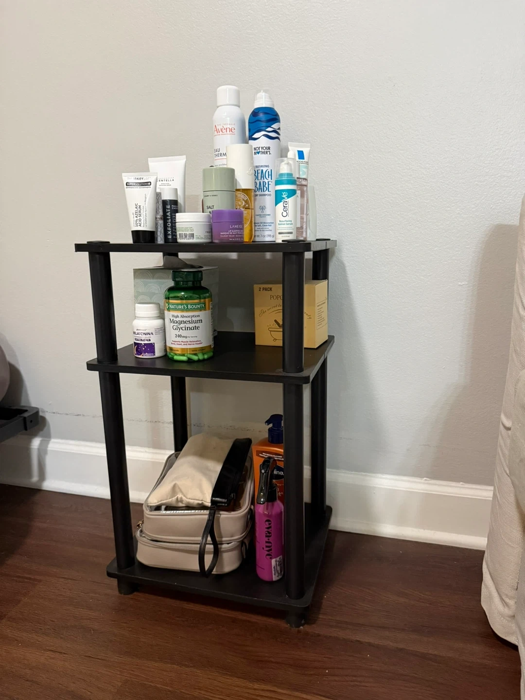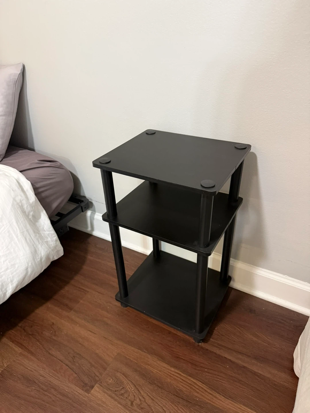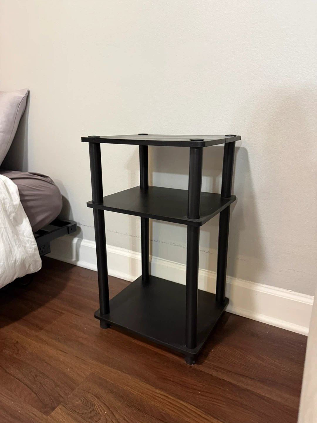 Despite its small size, it can hold many items thanks to the multiple shelves. Great for organizing things like books, chargers, decor, or everyday essentials next to the bed.