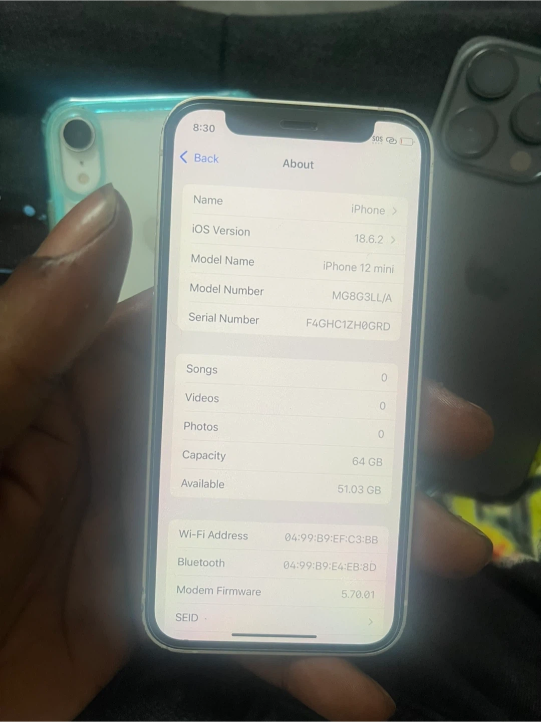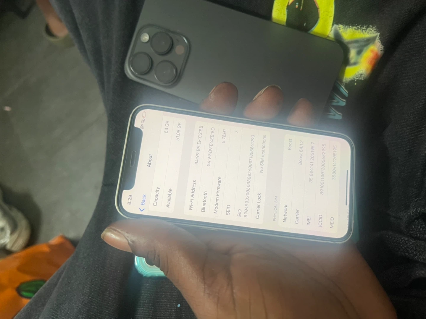 25Selling a white iPhone 12 mini with 64GB of storage Model Number: MG8G3LL/A Carrier Lock: No SIM restrictions Available Capacity: 51.03 GB